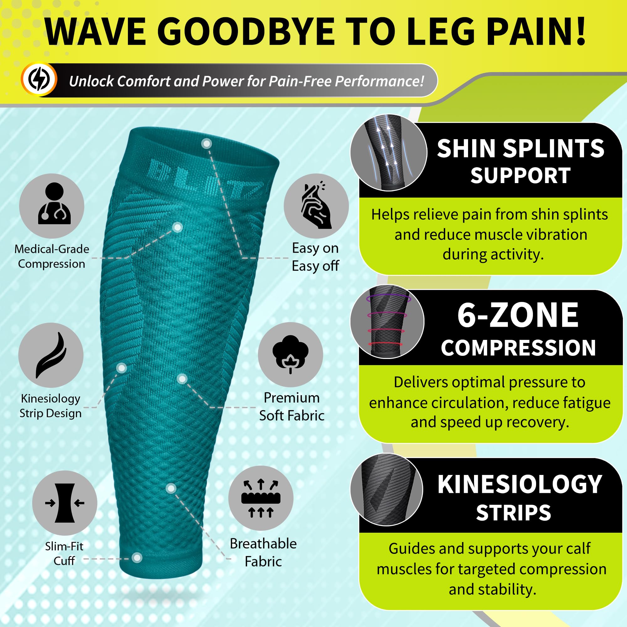 Effective Compression for Swelling & Varicose Veins Relief: The BLITZU Calf Compression Sleeves feature graduated compression to improve blood circulation, reduce swelling, and alleviate discomfort caused by varicose veins and pregnancy-related leg swelling, making them perfect for nursing mothers and individuals with circulation issues.