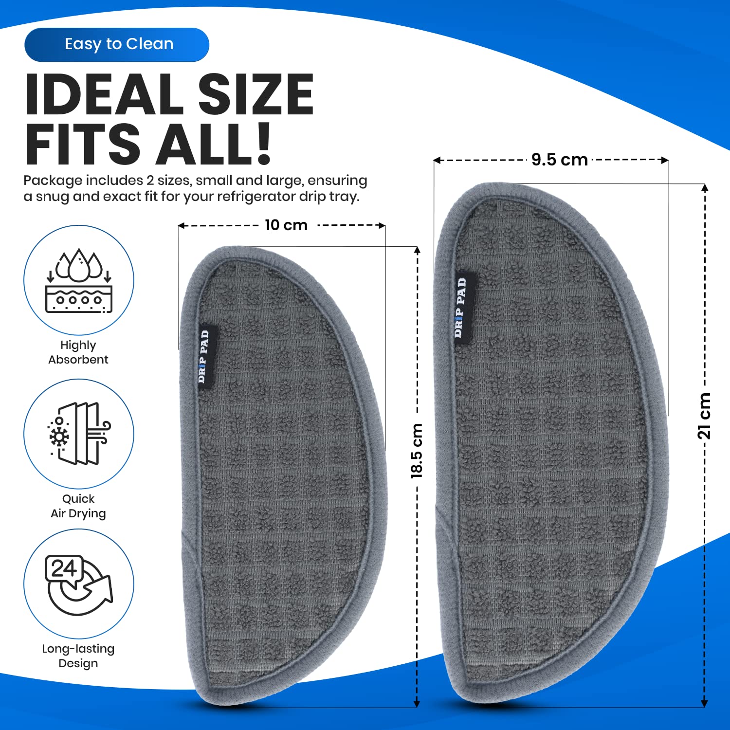 💧 Fits Most Fridge Drip Trays - Between the Semi-circular and Rectangular design, the Drip Pad is sized to fit a wide variety of drip trays