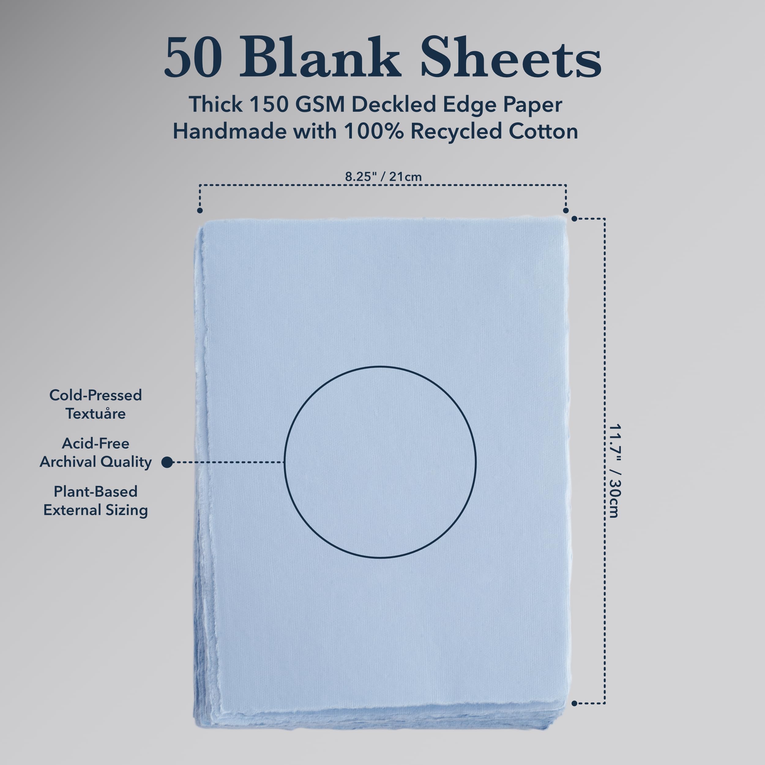 Wanderings Blue A4 Handmade Paper with Deckled Edge - 8.3" x 11.7", 150 GSM, 50 Sheets Textured Paper - Perfect for, Drawing, Writing, Printing, Watercolor & Mixed Media