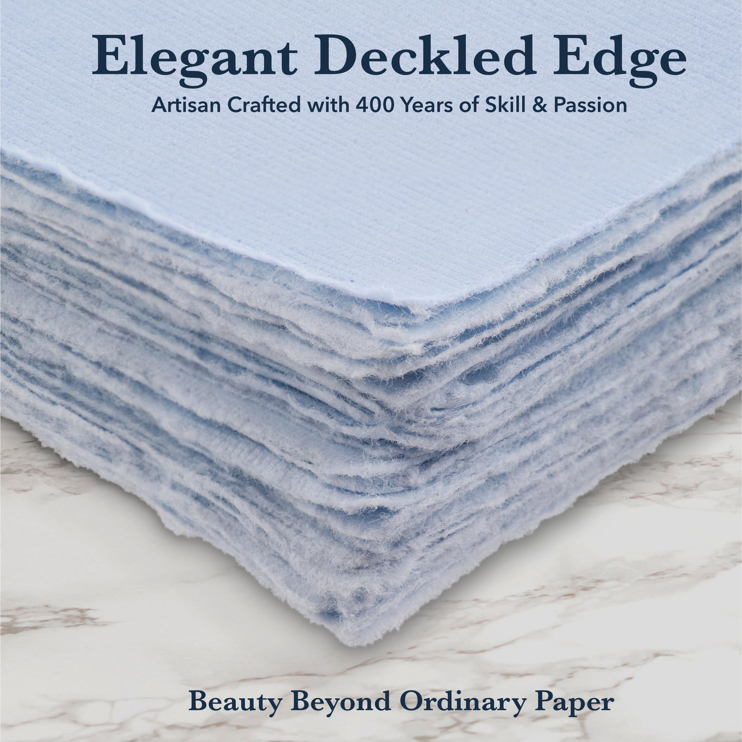 [Artisan Crafted – Handmade Deckled Edge Cotton Paper]: Experience the unmatched craftsmanship of our 50-pack handmade cotton deckled edge paper, expertly produced by artisans using time-honored techniques passed down through generations since 14th-century India. These luxurious, cold-pressed 150gsm handmade paper sheets are externally treated with plant-based sizing solution, making it ideal for watercolor, acrylics, charcoal, ink, or pencils. For heavy washes and extensive water use, we recommend our watercolor paper: B097LLX66N