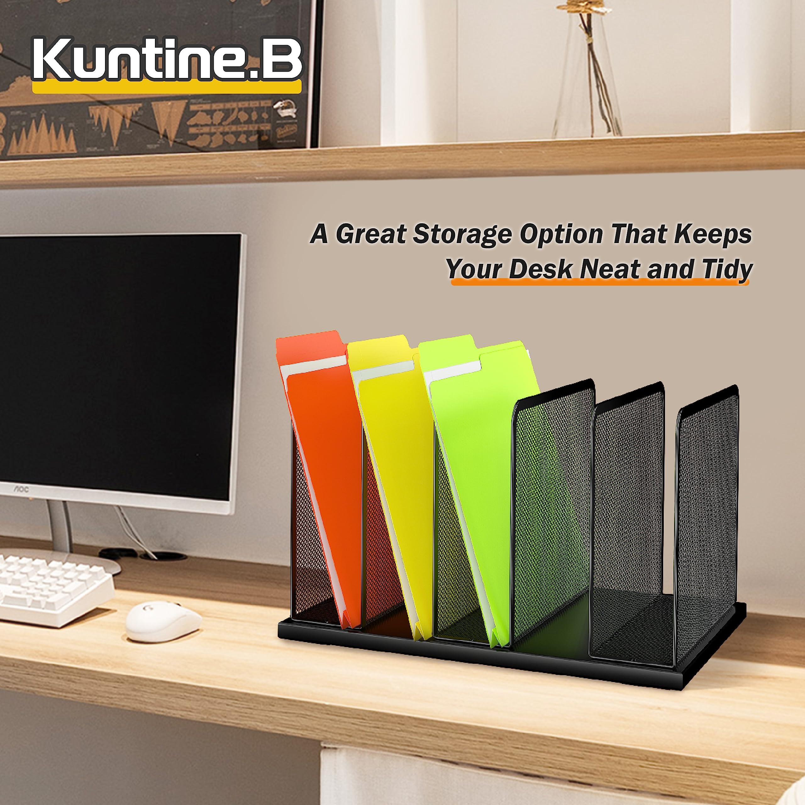 Kuntine.B Desk File Organizer 5 Upright Mesh Desktop Organizer File Sorter Office Organization File Holder for Home, Office & Classroom, 2 Pack