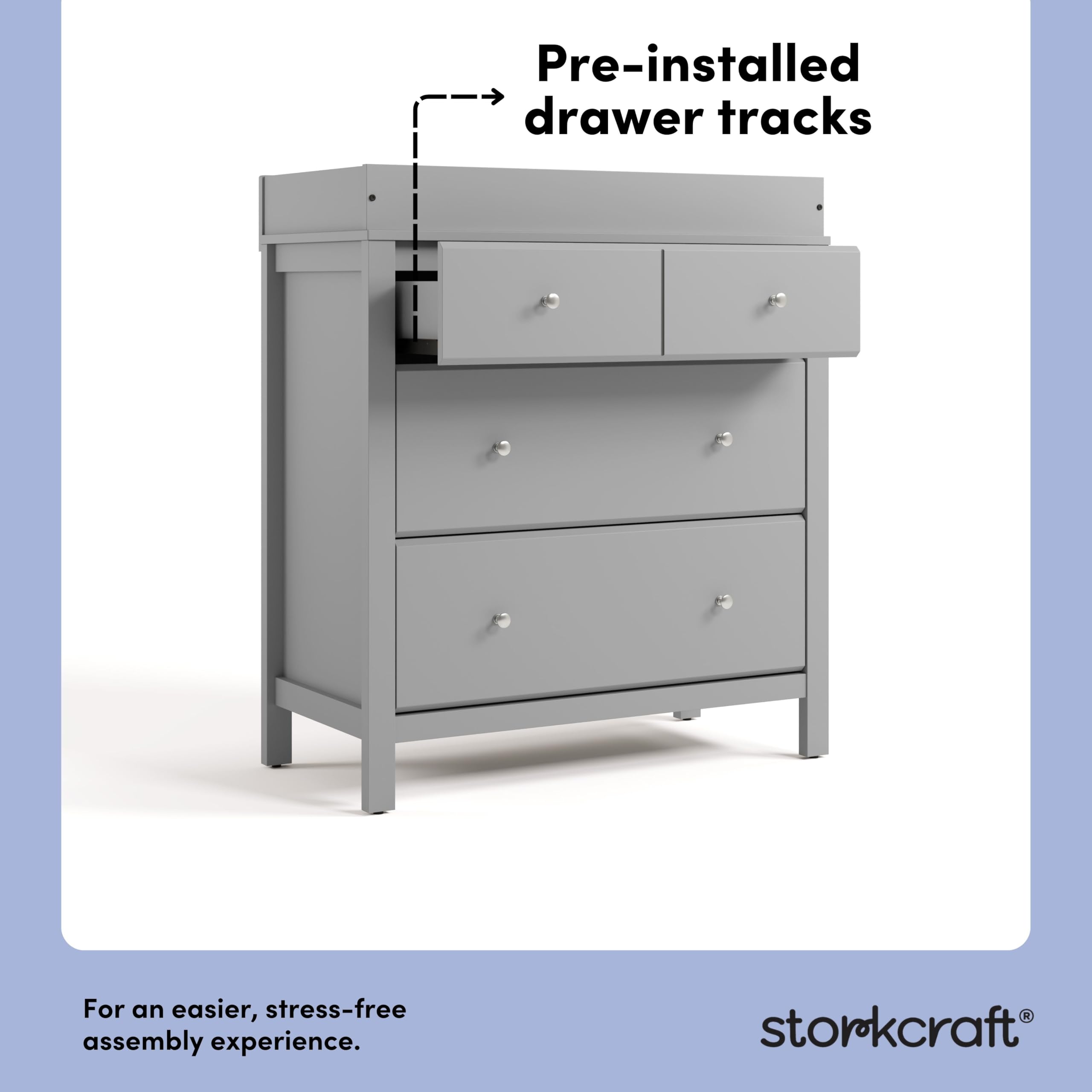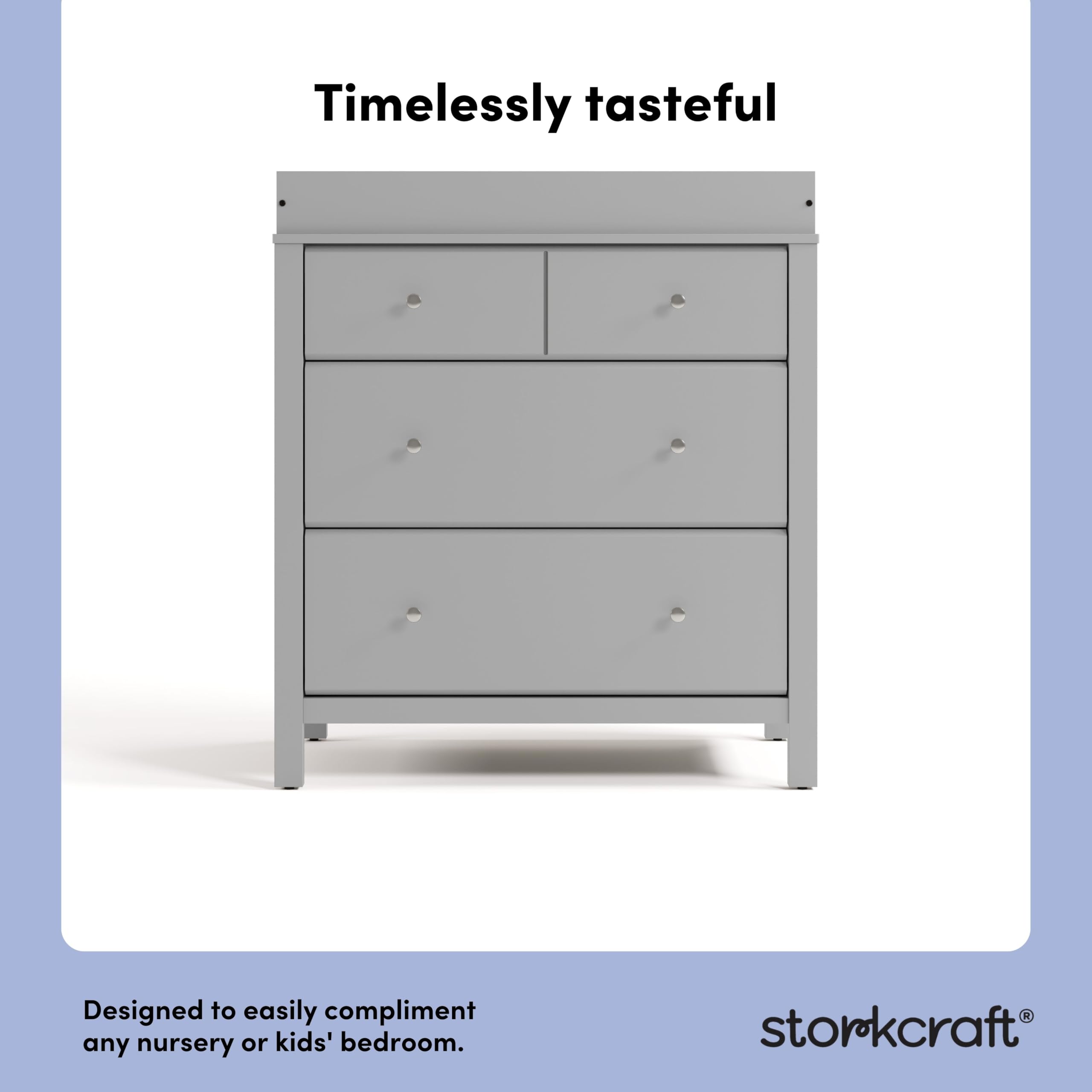 Complete your Storkcraft Horizon Collection with the Horizon 3 Drawer Chest with Removable Changing Topper, featuring a clean, modern design combined with convenient storage and versatile functionality that fits any nursery decor. The removable changing topper is designed exclusively to fit the Storkcraft Nest 4-Sided Contoured Changing Pad (does not fit standard-size pads), offering an all-in-one storage solution crafted to serve families well beyond the baby years. This dresser is GREENGUARD Gold Certified, screened for over 10,000 chemicals and VOCs known to pollute indoor air, helping create a healthier environment for your baby. It is tested to meet or exceed all applicable voluntary and mandatory safety standards, including CPSIA and ASTM F2057 safety specifications for clothing storage units. During infancy, use the Horizon chest as a changing table with ample storage for nursery essentials; as your child grows, simply remove the changing topper to convert it into a durable bedroom storage chest. By Trusted since 1945, Storkcraft is proud to be a recipient of the Parent Tested Parent Approved (PTPA) Seal of Approval and backs this product with a 1-year limited manufacturer’s warranty.