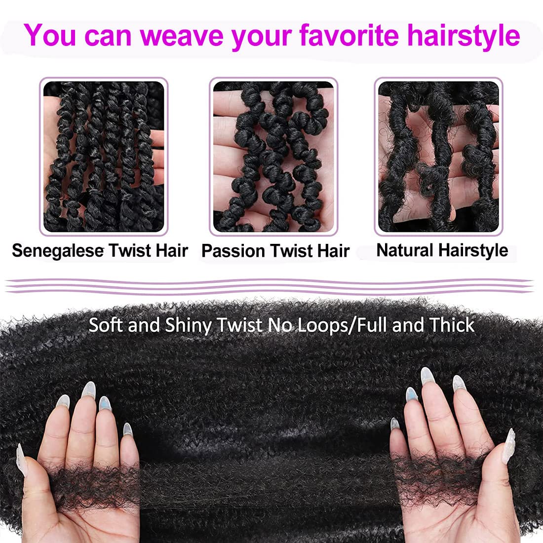 5. Pre-separated Springy Afro Twist Hair: Pre-separated springy afro twist hair braiding hair is suitable for women of all ages. suitable for daily use, swimming, wedding, party, the outdoors, etc