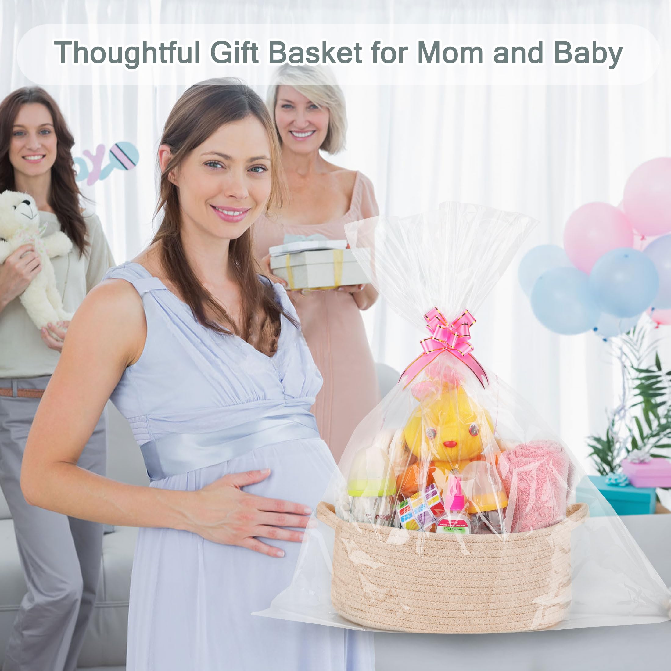 【Best Gift Options】 Our woven gift basket comes with one clear cellophane bag and three ribbons of different colors, which is very convenient for making gifts. It is a perfect choice for Birthdays, Baby Showers, Mother's Day, Father's Day, Valentine's Day, Graduation Gifts, Easter and Christmas. This small storage basket itself is a great gift.