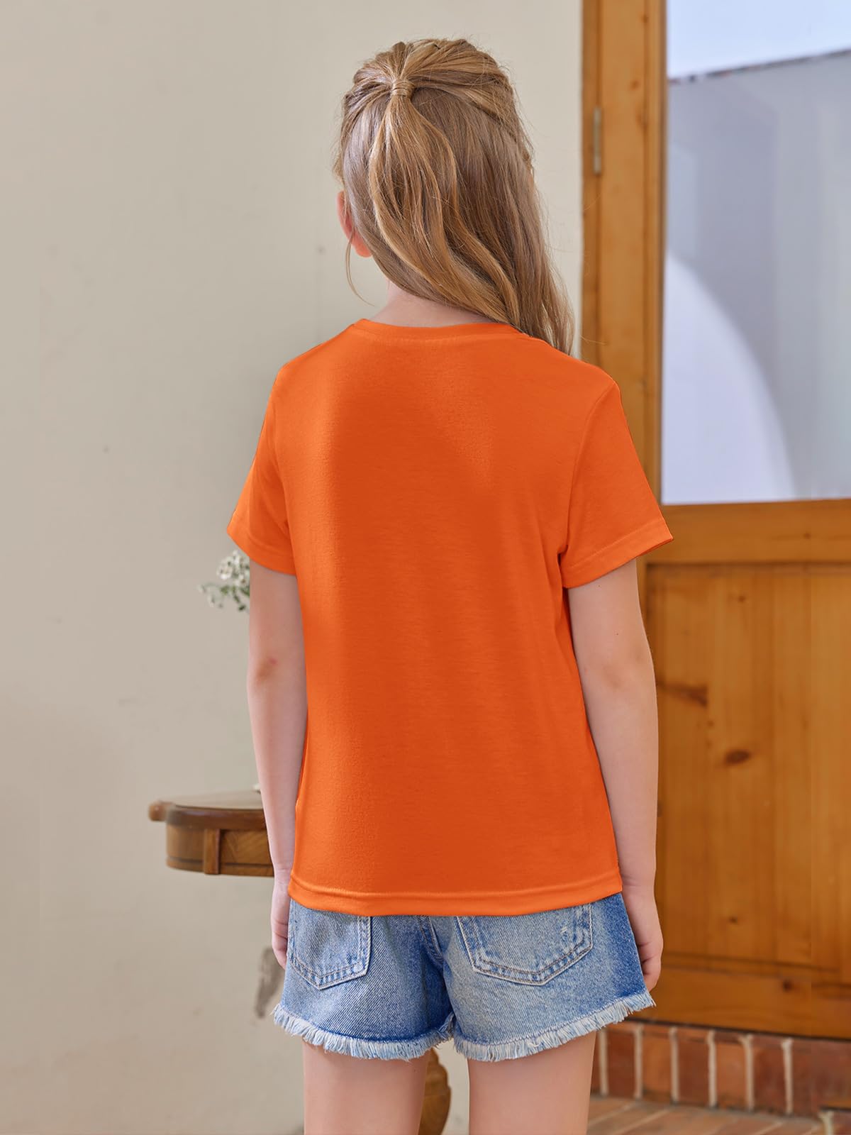 Match: These girls short sleeve T-shirts can be easily paired with shorts, skirts, jeans, overalls, sweatpants, flats and sneakers. Or pair it with a cardigan or jacket in spring and fall. A classic and basic tops that is cute and fashionable and will never go out of style