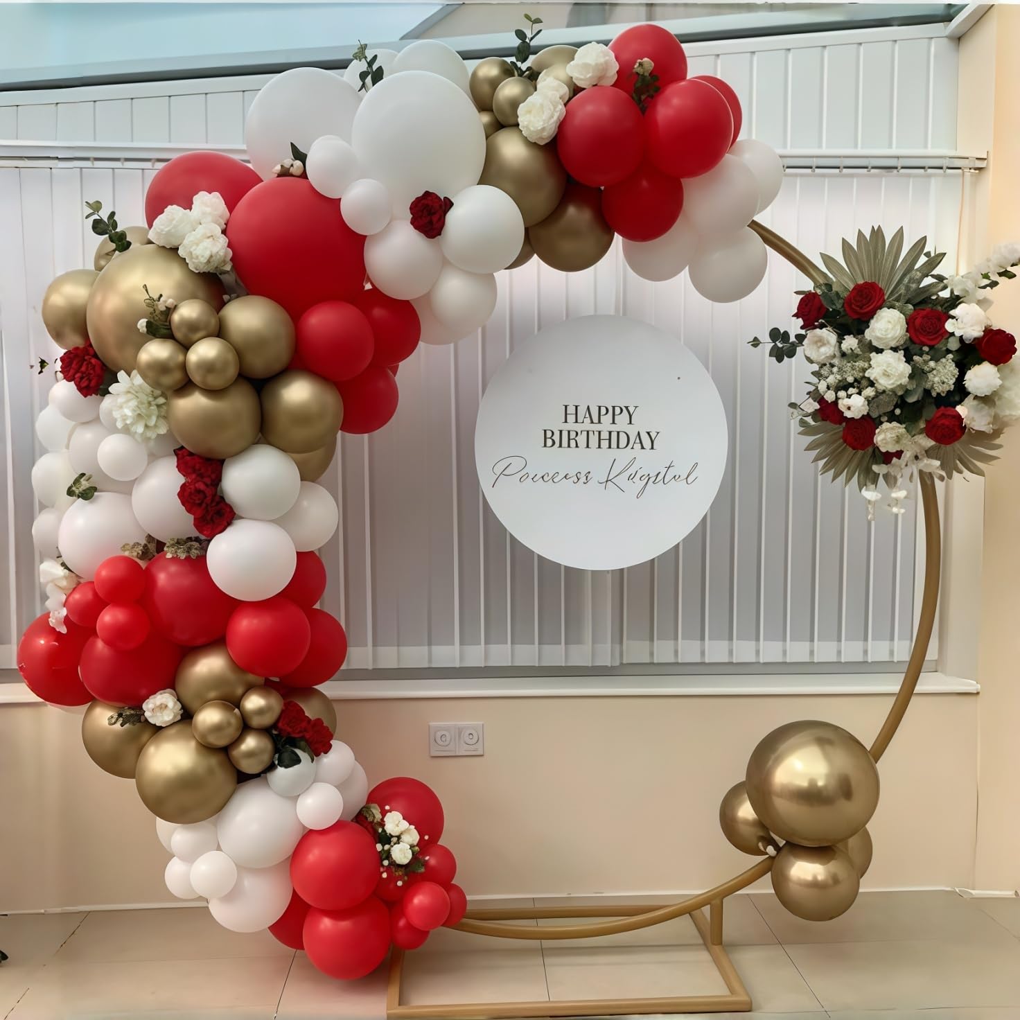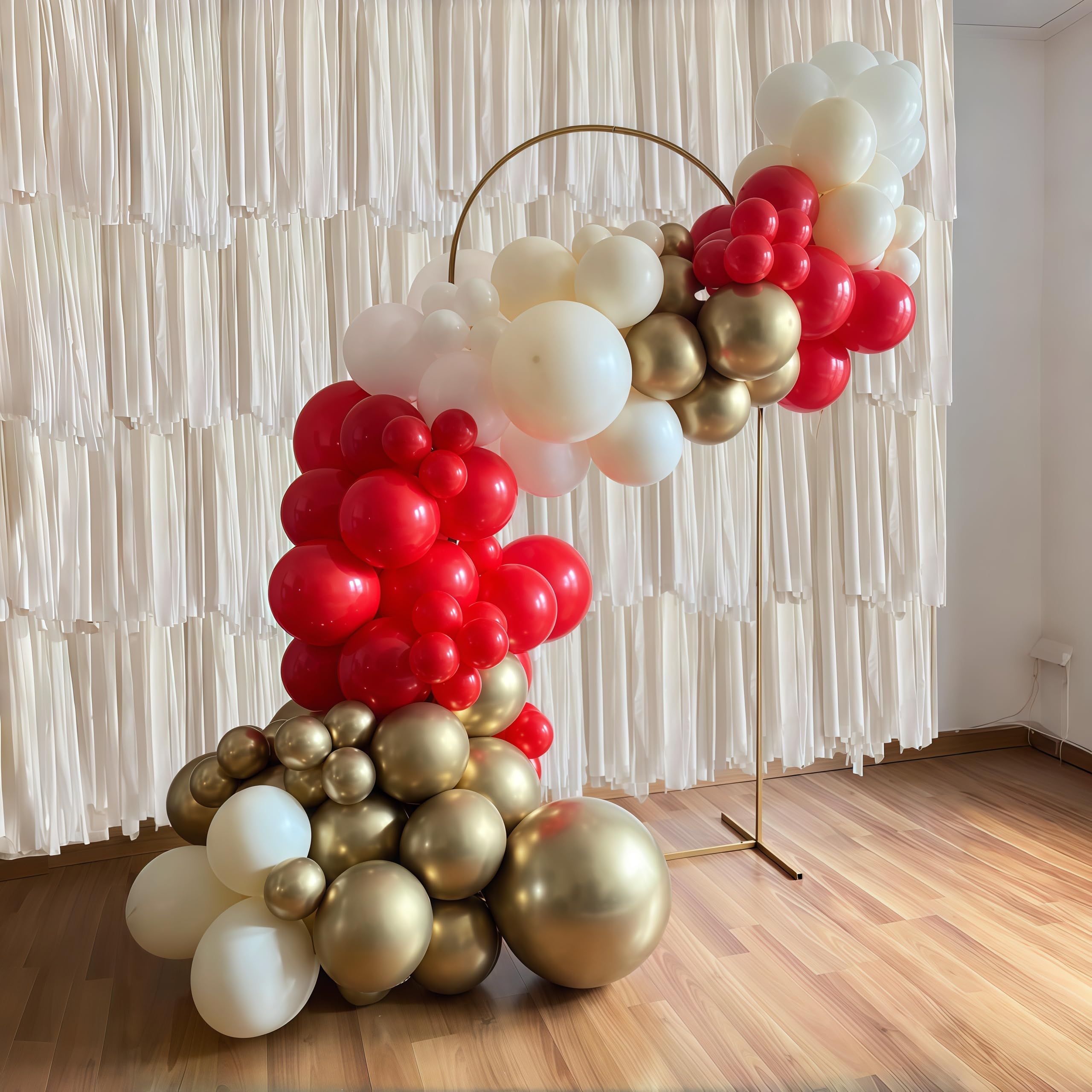 Multiple creative uses: Our red, white, and gold balloon kit is color coordinated and easy to match, making it perfect for creating balloon arches, balloon garlands, balloon bouquets, balloon columns, table centerpieces, or photo booth backdrops. Great for decorating entrances, cake tables, party walls, and dessert stations. TIPS: Use 2 or more packs for a fuller display!