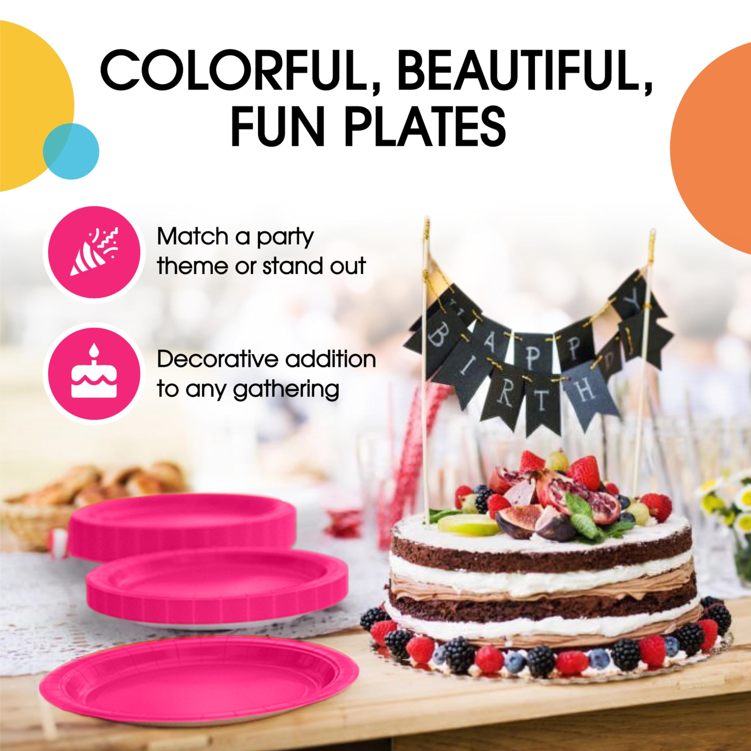 Paper Party Plates - Save time and energy with these bulk paper plates that make hosting events and parties a breeze. No need to worry about washing dishes or dealing with broken plates, as these disposable plates provide the ultimate convenience. Effortlessly cater to your guests, and focus on creating memorable moments with the help of our cerise cake plate.