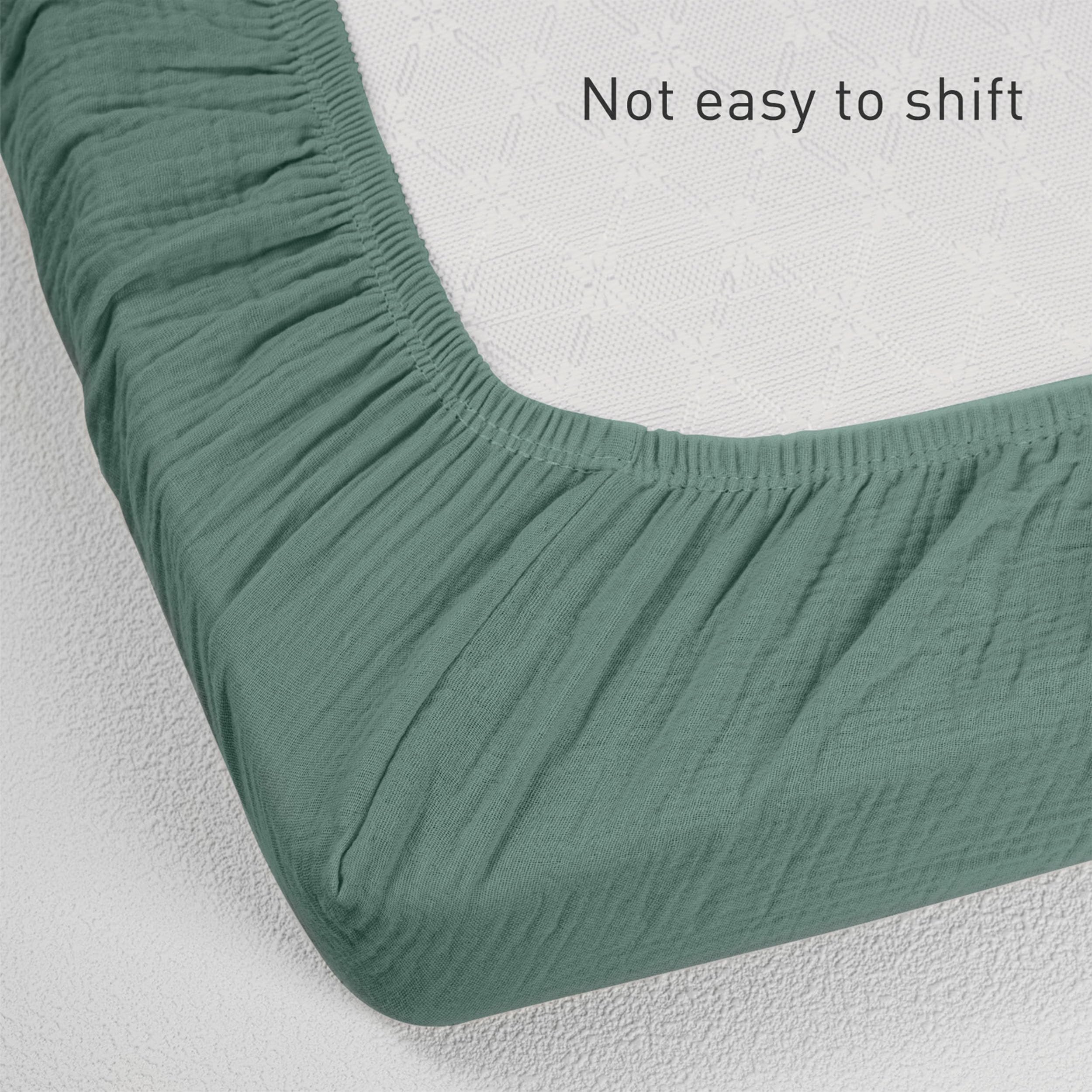 SKIN-FRIENDLY TO BABY: These muslin mini crib sheets are made of 100% cotton (Muslin) for maximum breathable with skin-friendly soft touch. Our mini crib sheets are hypoallergenic, gentle on baby's delicate skin. It will provide super comfortable sleeping environment for your little one.