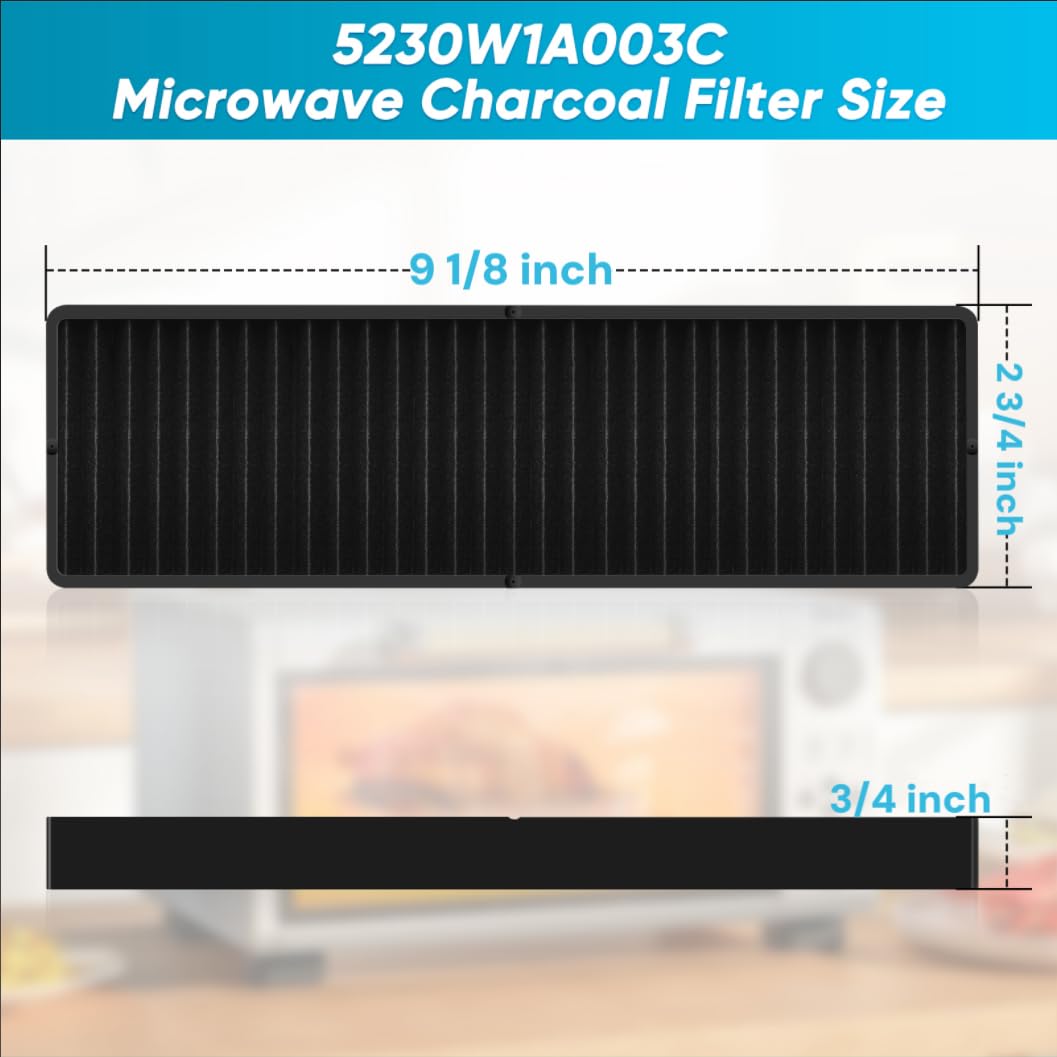 5230W1A003C Microwave Charcoal Filter Size: 9 1/8 X 3 X 7/10" inches, This filter fit for Bosch 492599 GE JX81D LG WB02X10943 5230W2A003A 5230W1A003C LMV1825SBQ LMV1825SB compatible with Bosch GE LG