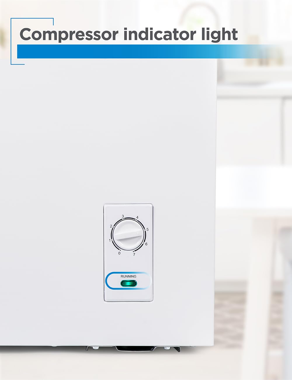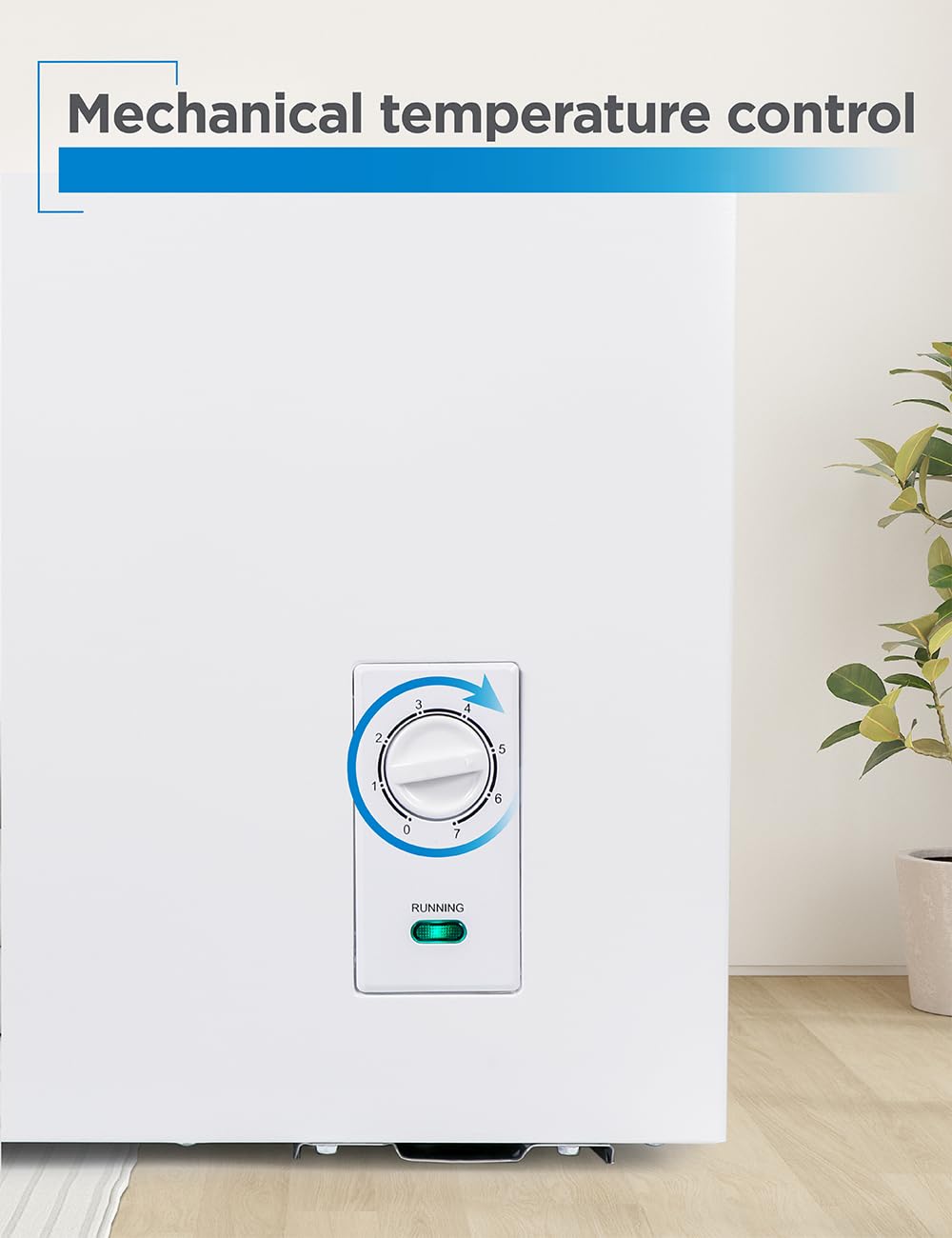 Mechanical Temperature Control: The freezer chest includes a mechanical temperature control dial and indicator light located on the outside, allowing precise adjustments without opening the freezer.