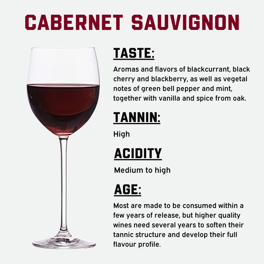 FRENCH CABERNET SAUVIGNON WINE KIT: It is blackcurrant rather than cassis, with tannins that are firm but not dry, and an elusive touch of mint. The franc and merlot have helped the cabernet show a bit of love, the French oak likewise. Makes 30 bottles with an ABV between 11% and 13%.