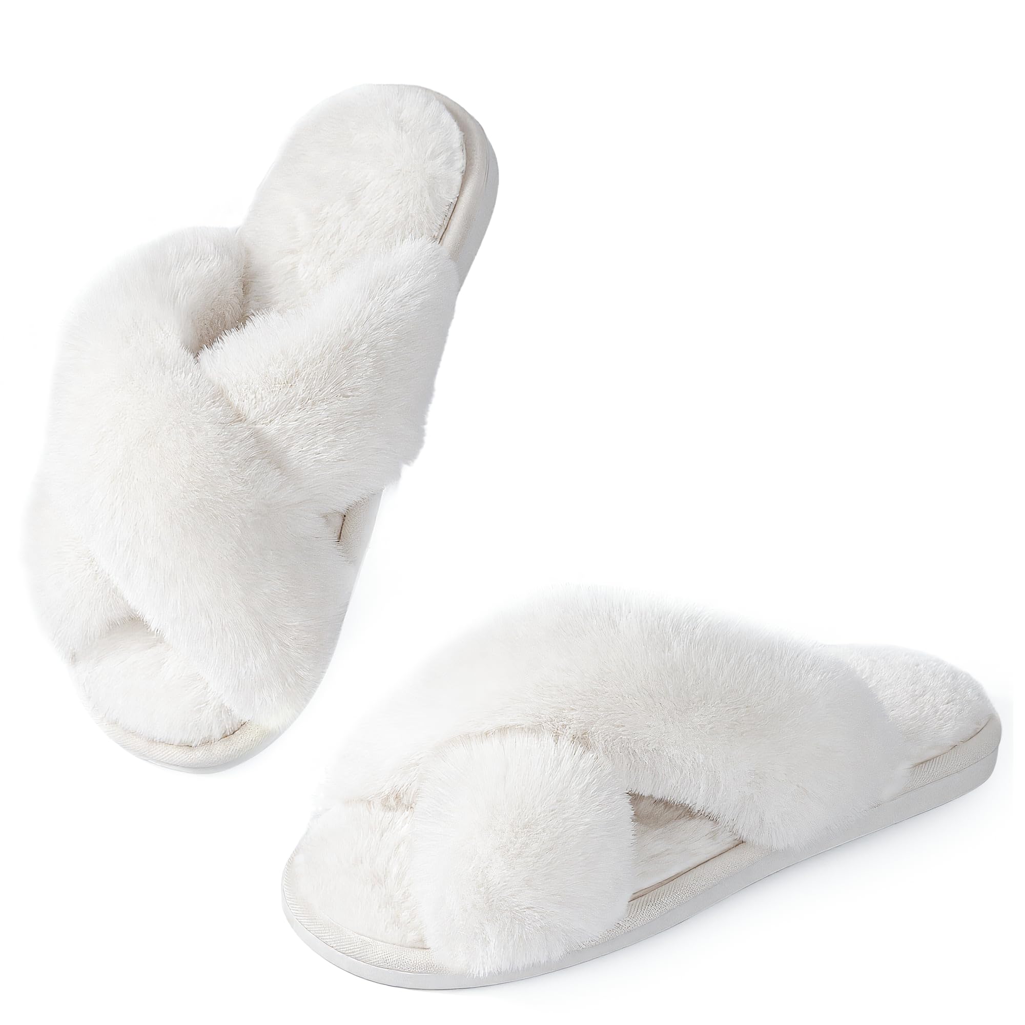Chic Must-Have Slippers for Women: Ankis fuzzy slippers feature a trendy cross-band design that looks cute and stylish. The open-toe style makes them easy to slip on anytime. Soft plush faux fur keeps your feet cozy while staying breathable for all-day comfort at home