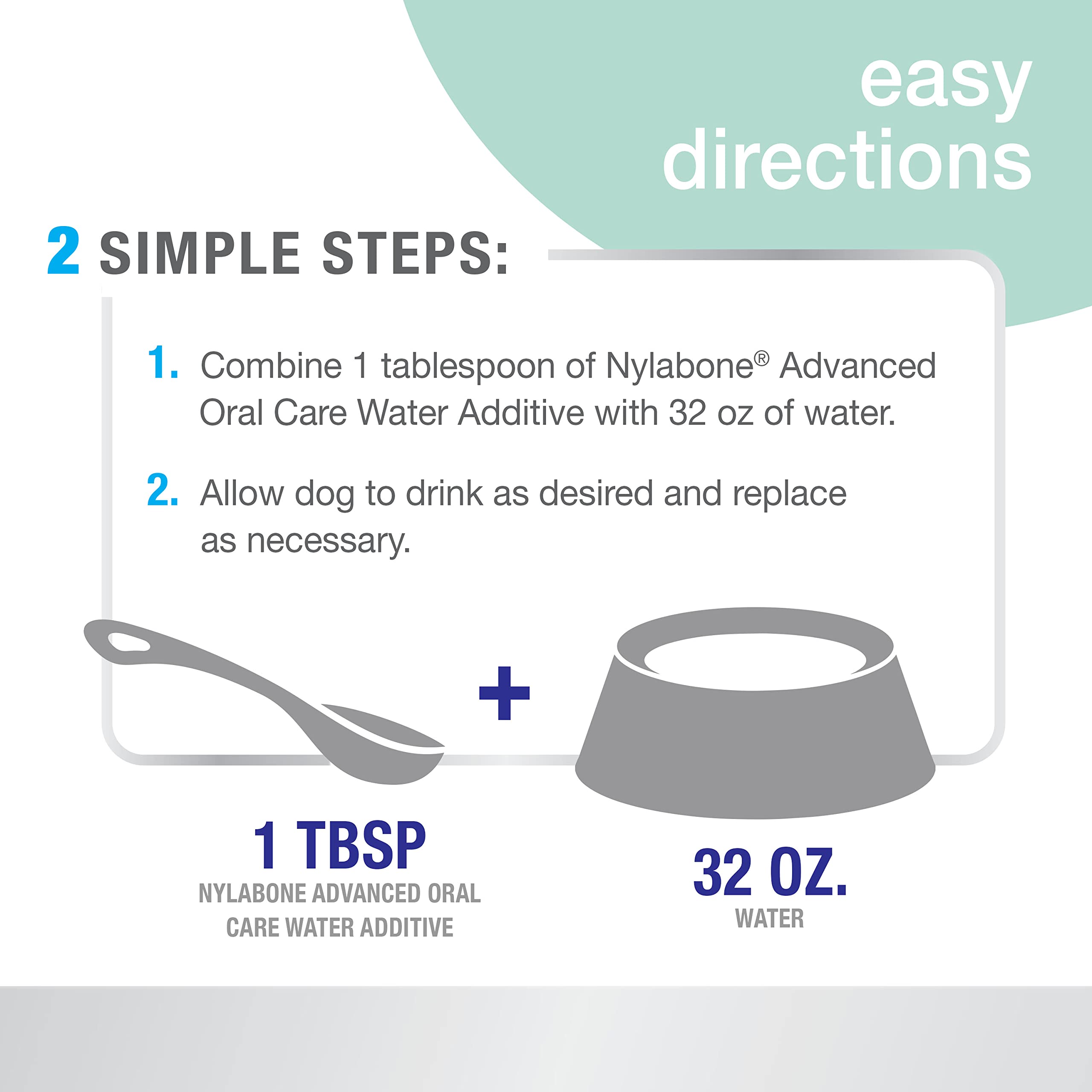 GREAT FOR DOGS AND CATS - Add 1 tablespoon of dental water additive for every 32 ounces of your pet's water and replace as necessary