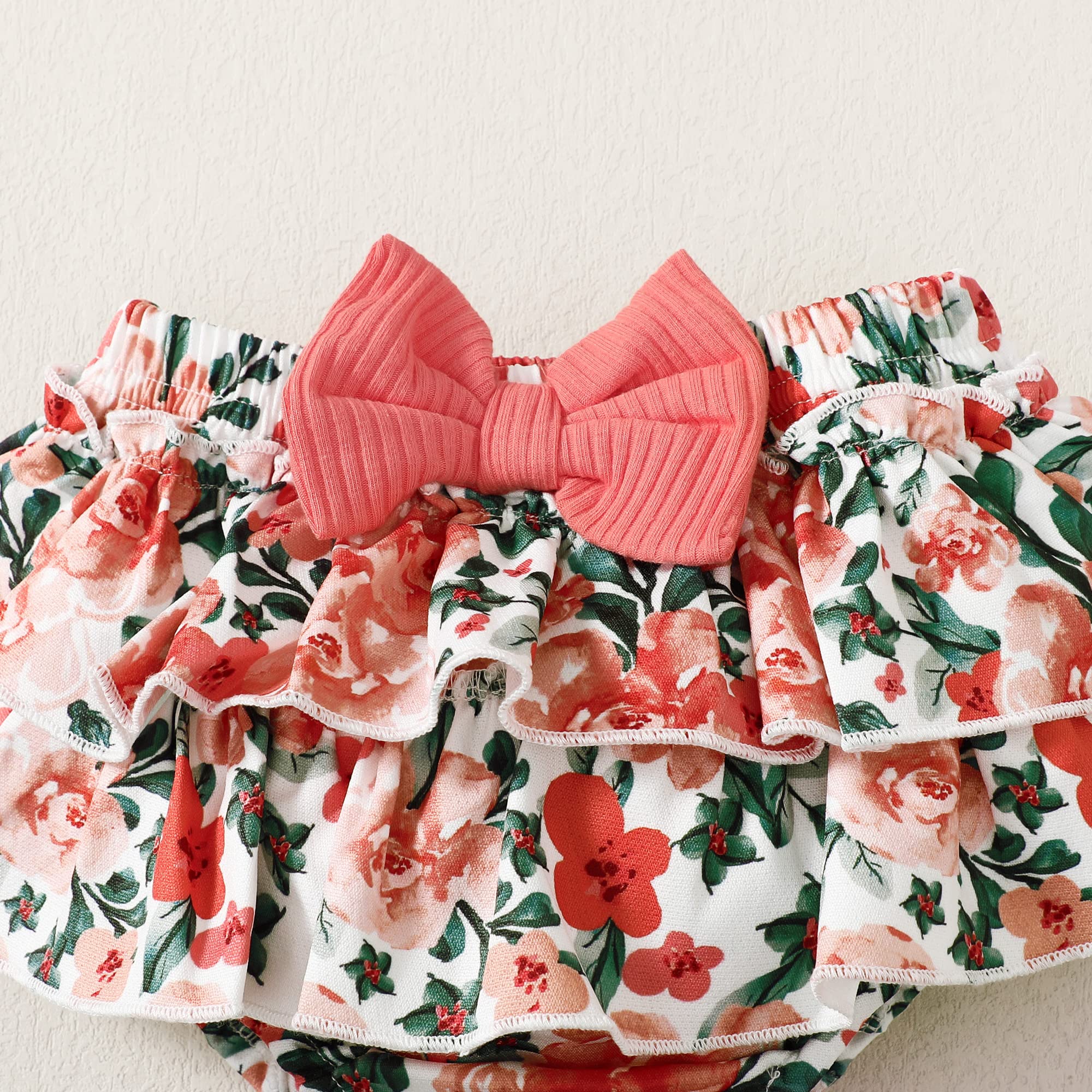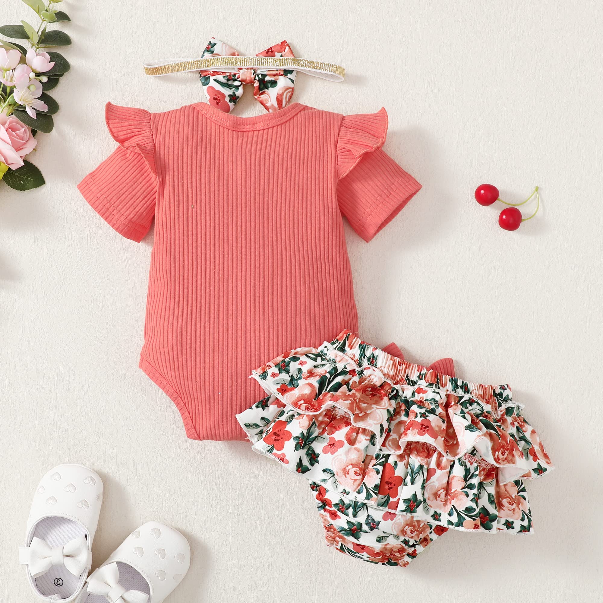 Great Quality: Cotton ribbed baby girl romper shorts set bring comfortable feelings. Soft, safe and harmless to baby's skin. Pretty baby girl clothes for gifts