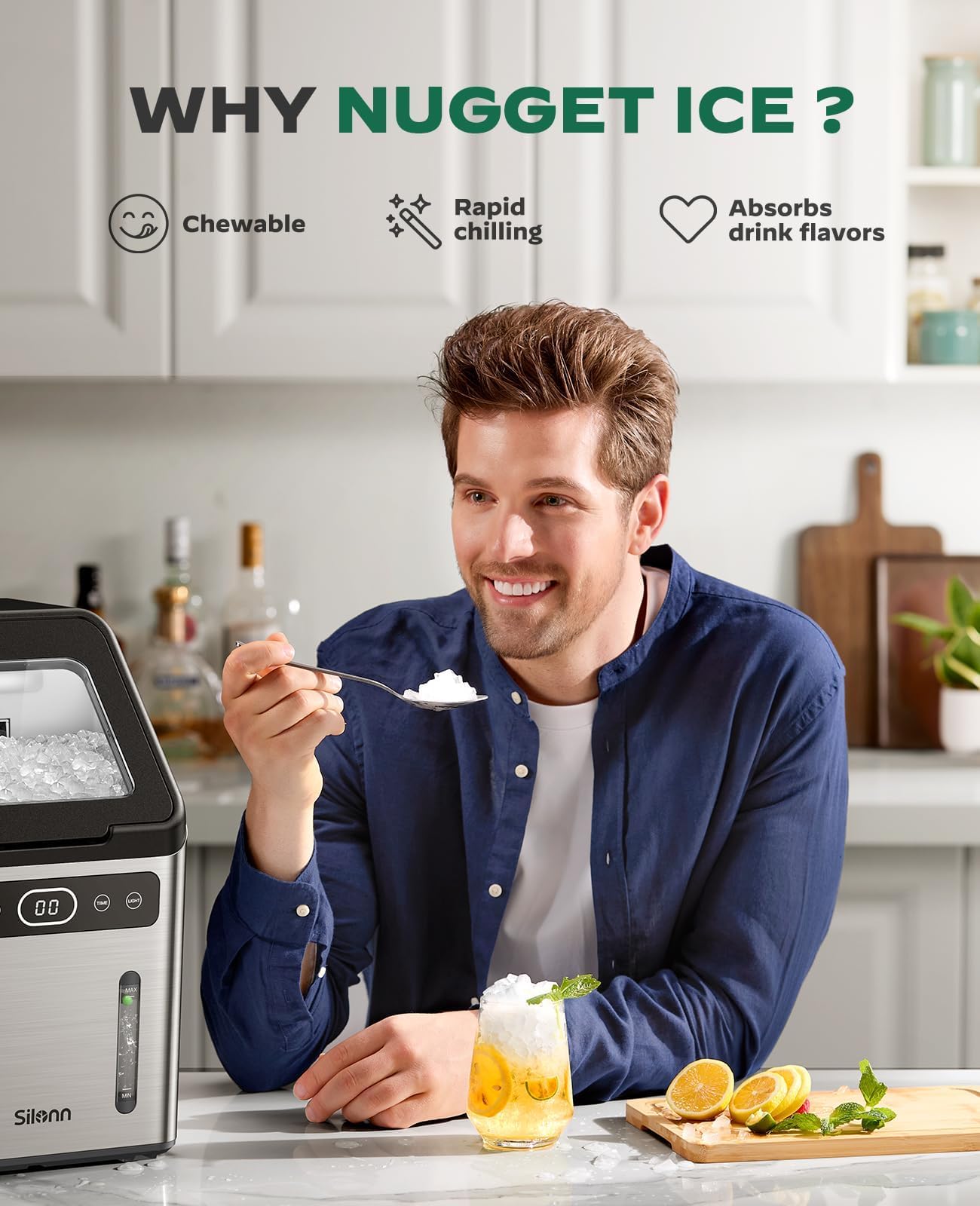 Chewable, Crunchable Nugget Ice: Indulge in the satisfying texture of softer, chewable nugget ice. It chills your beverages faster than traditional cubes and absorbs flavors better, making every sip of your cocktail, soda, or iced coffee more delicious.