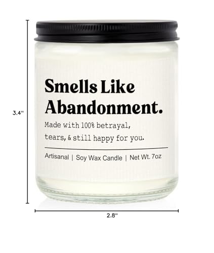 【Funny and Heartwarming Farewell Gifts】Saying goodbye is never easy, but our Shqiueos candle transforms the farewell experience into a heartwarming moment. "Smells Like Abandonment. Made with Betrayal, Tears, & Still Happy for You," adds a touch of humor and warmth to the farewell gesture. A unique and cherished leaving gift for coworkers, work bestie, friends