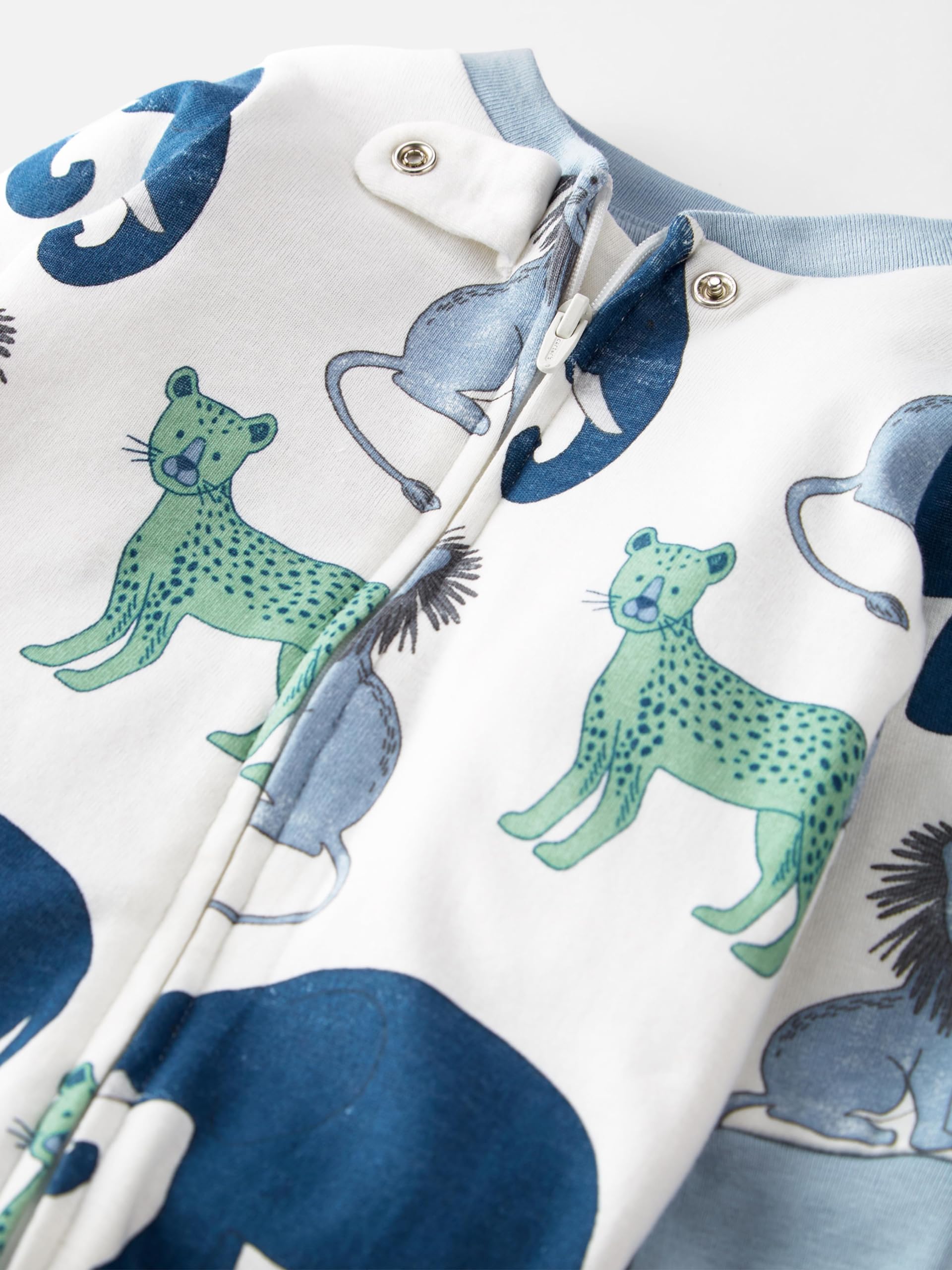 Description Cuddle baby up in this soft, certified organic cotton sleep & play. Made for daily adventures in tummy time, nap time and beyond, this piece is blooming with thoughtful details like a 2-way zipper to keep baby's arms & torso warm during diaper changes, plus built-in footies to keep tiny toes cozy. In our exclusive print, this one piece is wildly cute!
