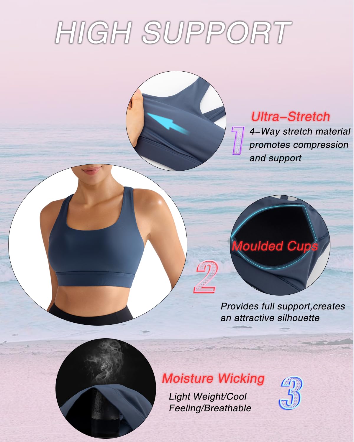 ✅ 【HIGH IMPACT SPORTS BRA】:Intense workouts call for extra support. RUNNING GIRL Sports Bra is strategically designed to deliver support and tailored for high impact activities like running, jumping and full body workouts. Featuring moulded cups and stretch straps for the perfect fit. Everything will stay in place and you can fully concentrate on aiming high!