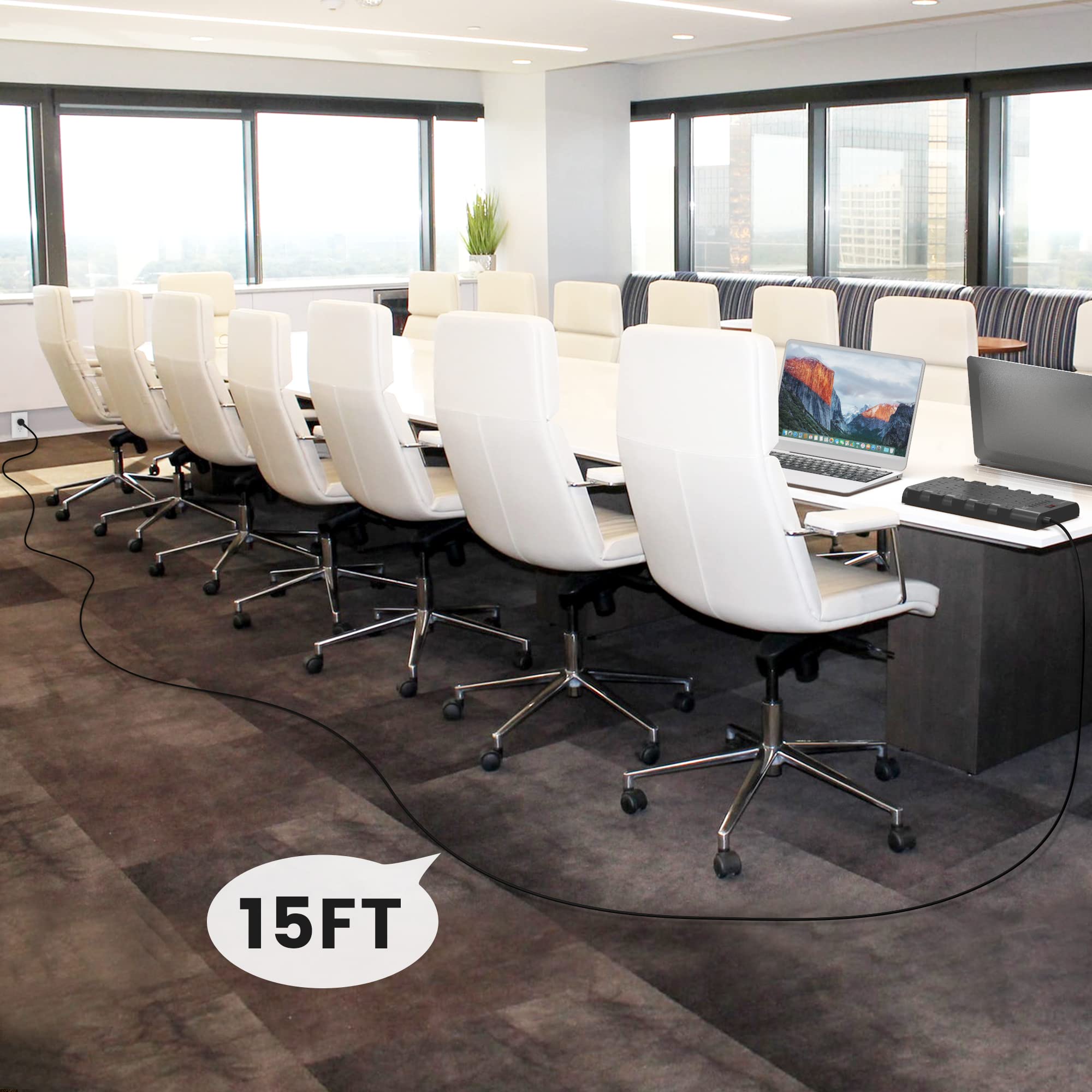 【Superior Surge Protection】Composed of 3 level complementary surge protector circuit, including TVS, MOV, GDT, the surge protector flat plug has a 2100-Joule energy rating providing a reliable power extension cord to protect your devices. It secures your electronic units from power spikes, lightning strikes, or fluctuations.