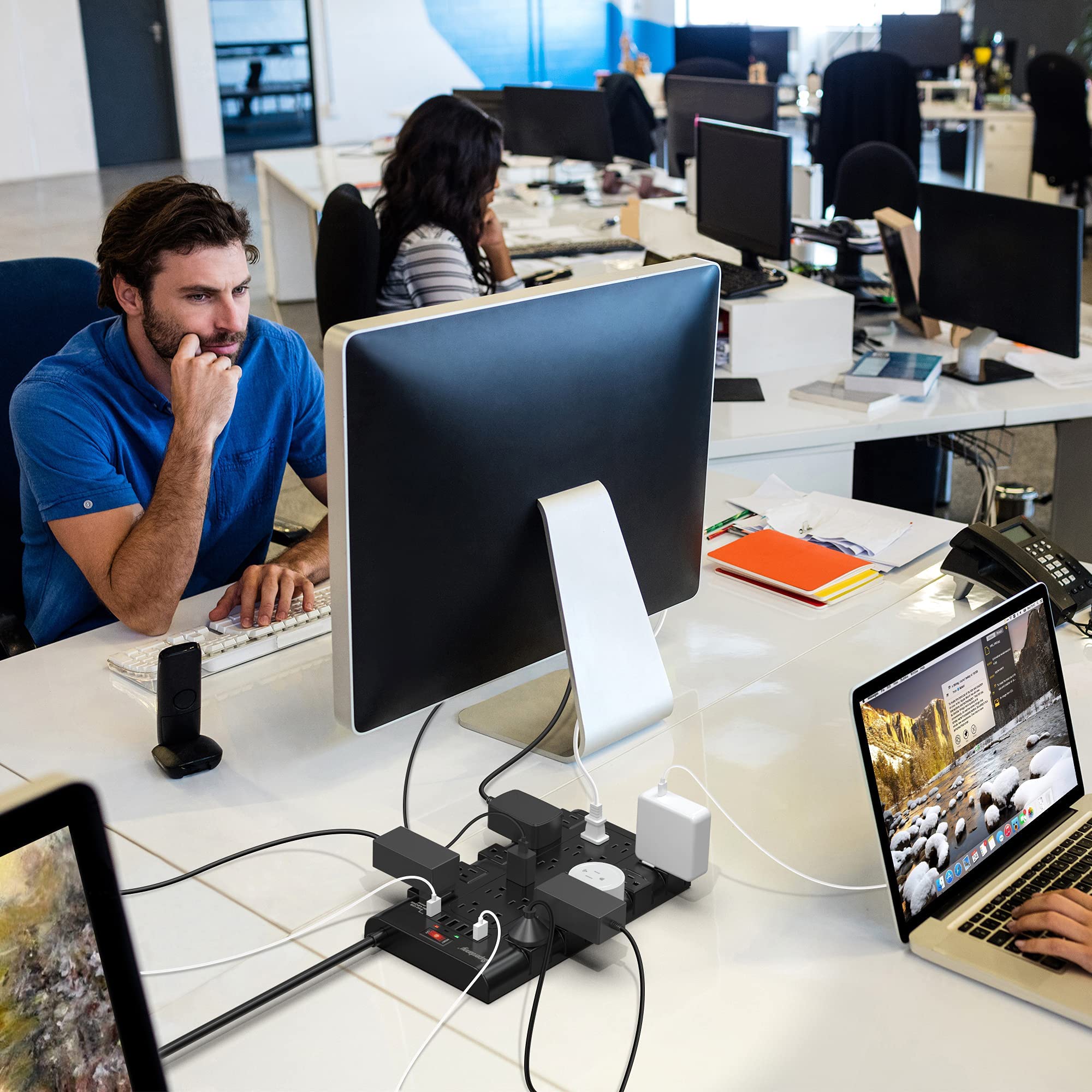 【Widely Spaced Outlets】 The unique design of this usb power strip allows there to be no issues with some bulkier plugs blocking other outlets, as the outlets are spaced out enough. There are four rows of outlets that give you multiple ways of plugging in a variety of cords. The power strip helps organize your cords, shelve your numerous adapters, have much less clutter and save space.