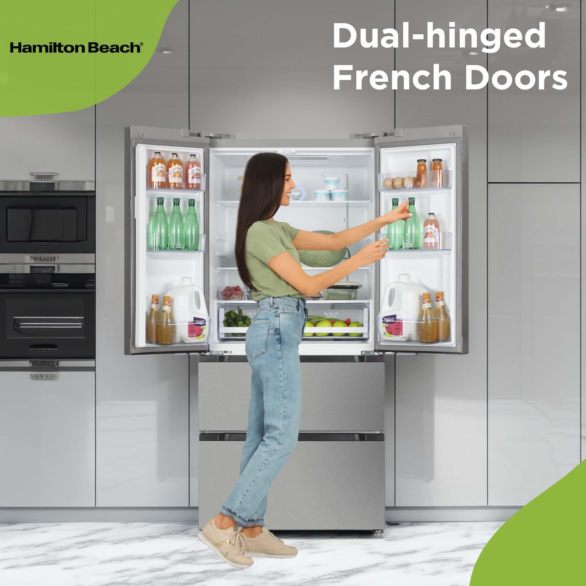 Large capacity - French doors 17.9 Cu. Ft. Capacity, perfect for all the family members