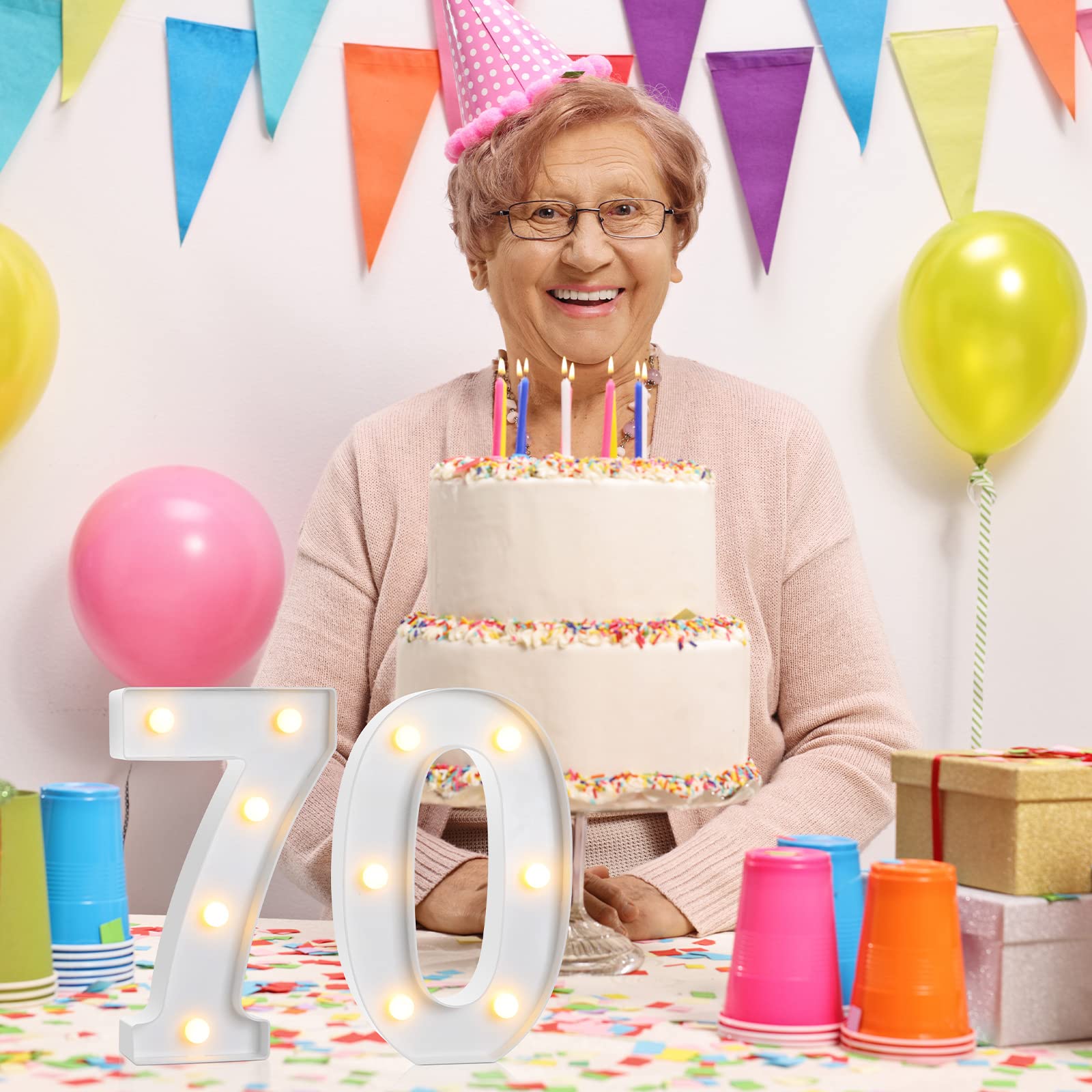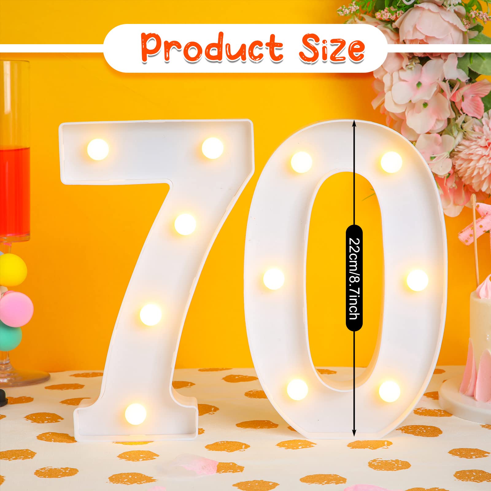 Birthday Party Supplies: you will receive 2 pieces of light up numbers, namely number [7] and number [0]. Specific style and classic white color can easily meet your party decoration needs, putting them on your table will definitely make your party eye catching and more attractive