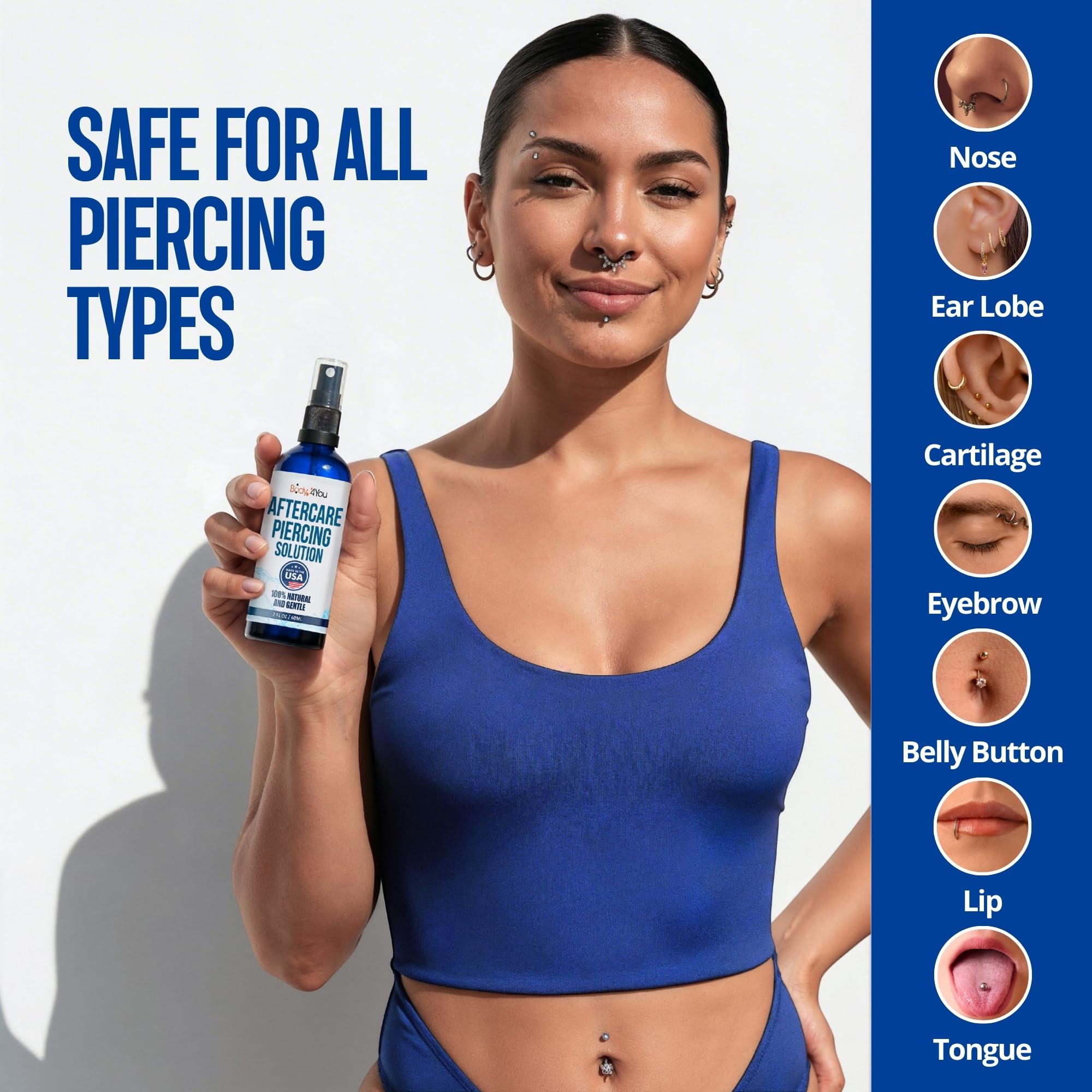 ESSENTIAL FOR EARS, FACE & BODY PIERCING: Daily Routine Use Helps to Reduce Discomfort and Recovery Timer, Calm Irritated Skin, Minimize Swelling and Wounds Associated with New or Old Piercings. Create Naturally Optimal Environment for Your Body - Enjoy Shorter Recovery Time and Smoother Piercing Experience