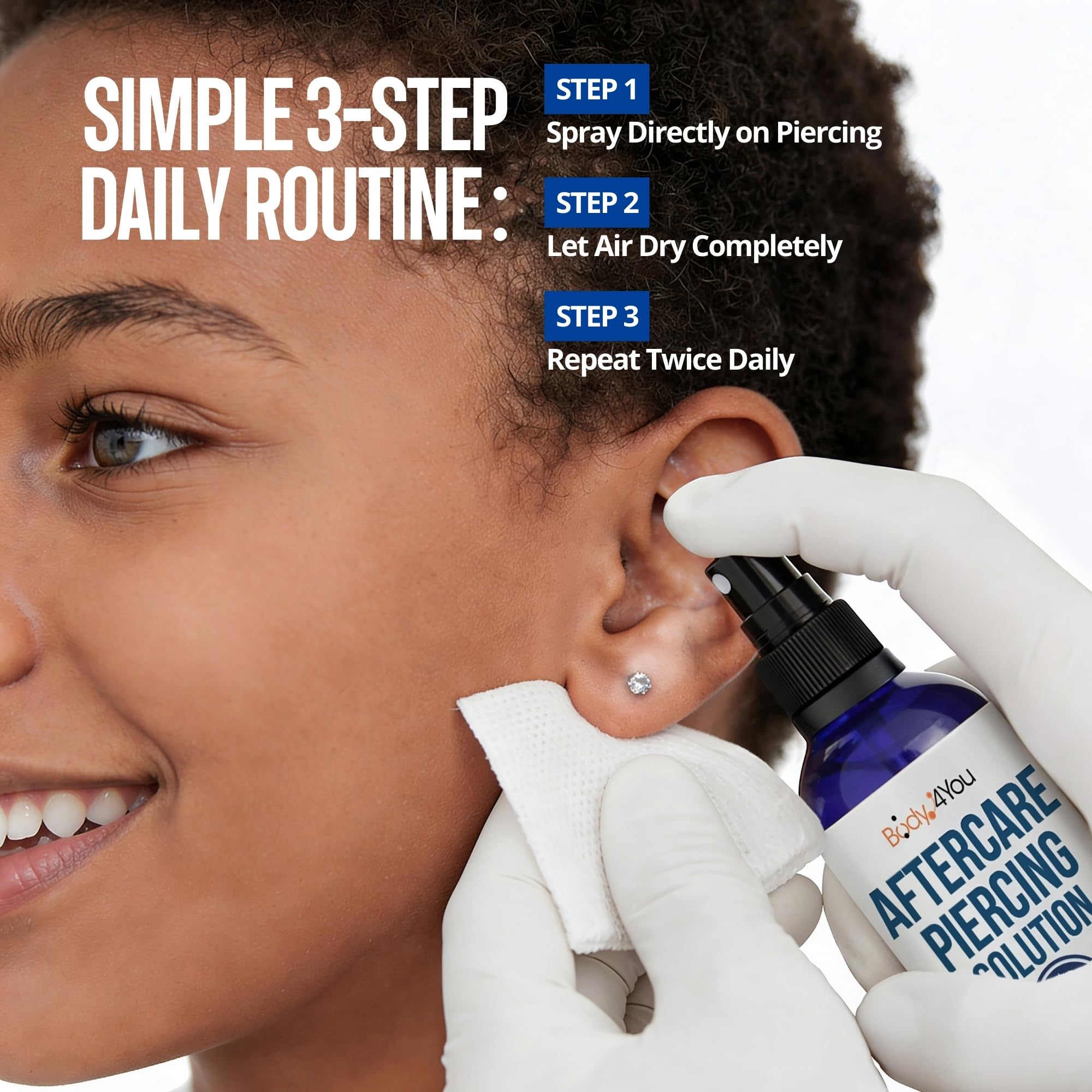 NOSE PIERCING CLEANER: Convenient Mist Dispenser Helps to Avoid Touching Your New Piercing, Simply Apply Directly on Piercing and Allow Air Dry. EAR CLEANING SOLUTION: For Best Results Apply Daily at Least Twice a Day. Sterile Saline Helps to Speed Up Recovery, but Remember to Be Patient with Your Body as It Recovers