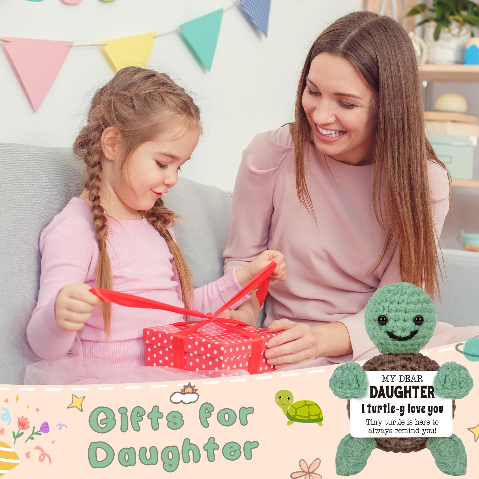 Bonus Daughter Gifts: The funny tiny turtle with charming expressions and the warming messages "Daughter, I turtle-y love you" on the cards will lift your daughter spirits, making her a delightful addition to her workspace or living area