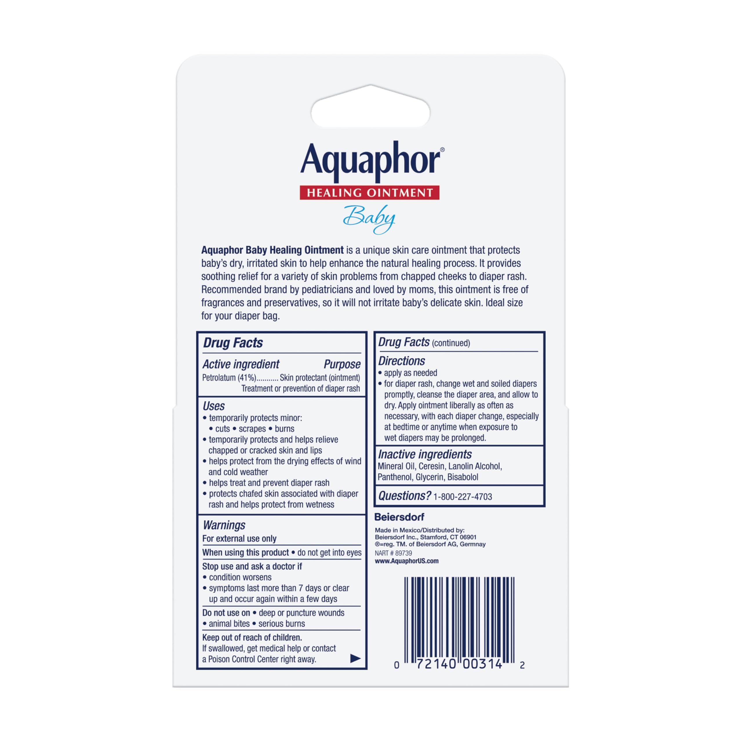 Aquaphor Baby Healing Ointment is designed specifically to suit the sensitive skin of babies. Ideal for use as a baby diaper rash cream, this Aquaphor Healing Ointment is also great for soothing dry, chapped or cracked skin and also helps to prevent chafing. Uniquely formulated with 41% Petrolatum (skin protectant) to allow oxygen to flow, Aquaphor Baby Healing Ointment nourishes and protects baby's skin to enhance healing from skin irritations such as chapped skin from teething and drool rash. Parents can also use Aquaphor baby ointment to soften dry hands and cuticles, cracked heels or chapped lips. Aquaphor Baby Healing Ointment is preservative and fragrance free, making it an ideal addition to your baby essentials. Aquaphor is a pediatrician recommended brand and is a multipurpose solution for your baby's many skincare needs. Each of the ingredients in Aquaphor skin care products is tested and approved for quality and safety.