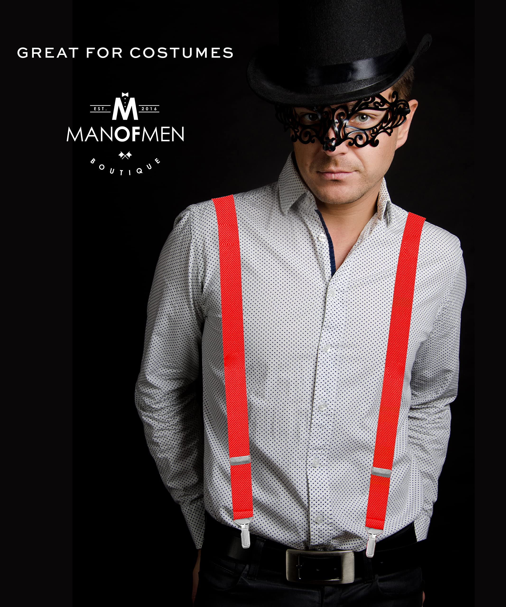 PERFECT FOR COSTUMES - be a firefighter, lumberjack, mime, fire captain, nerd, geek, businessman, mobster, detective, doctor, or any other character! Ratchet clips give you a PERFECT FIT when combined with premium quality elastic that moves with you.