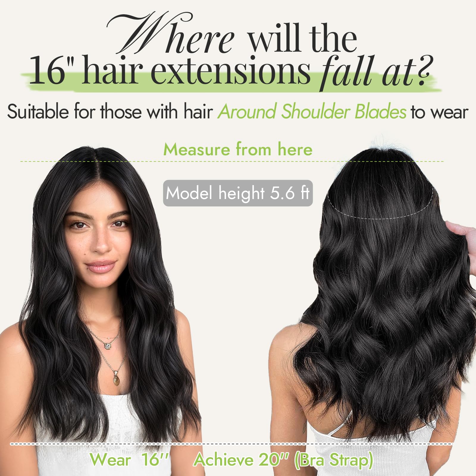 Different ways of wearing: 1. Position the wire hair extensions on your head like a hairdband, secure them with 4 clips, and hide the wires with your own hair.2. Only use invisible wires, suitable for easy hair loss and sensitive to bobby pins customers. 3. Only use 4 hair clips, suitable for customers with soft and sparse hair on the top of the head.It can meet various wearing situations.