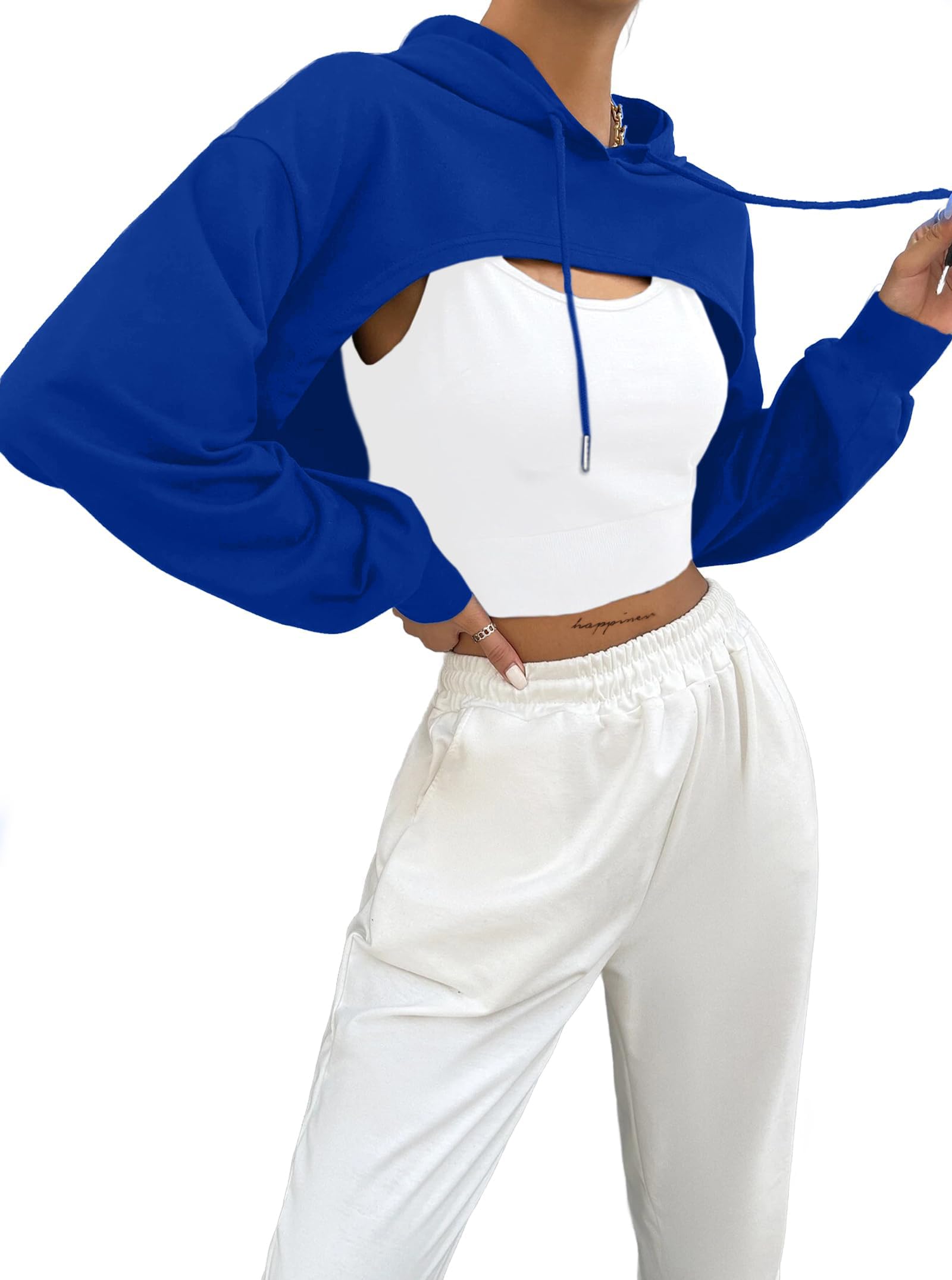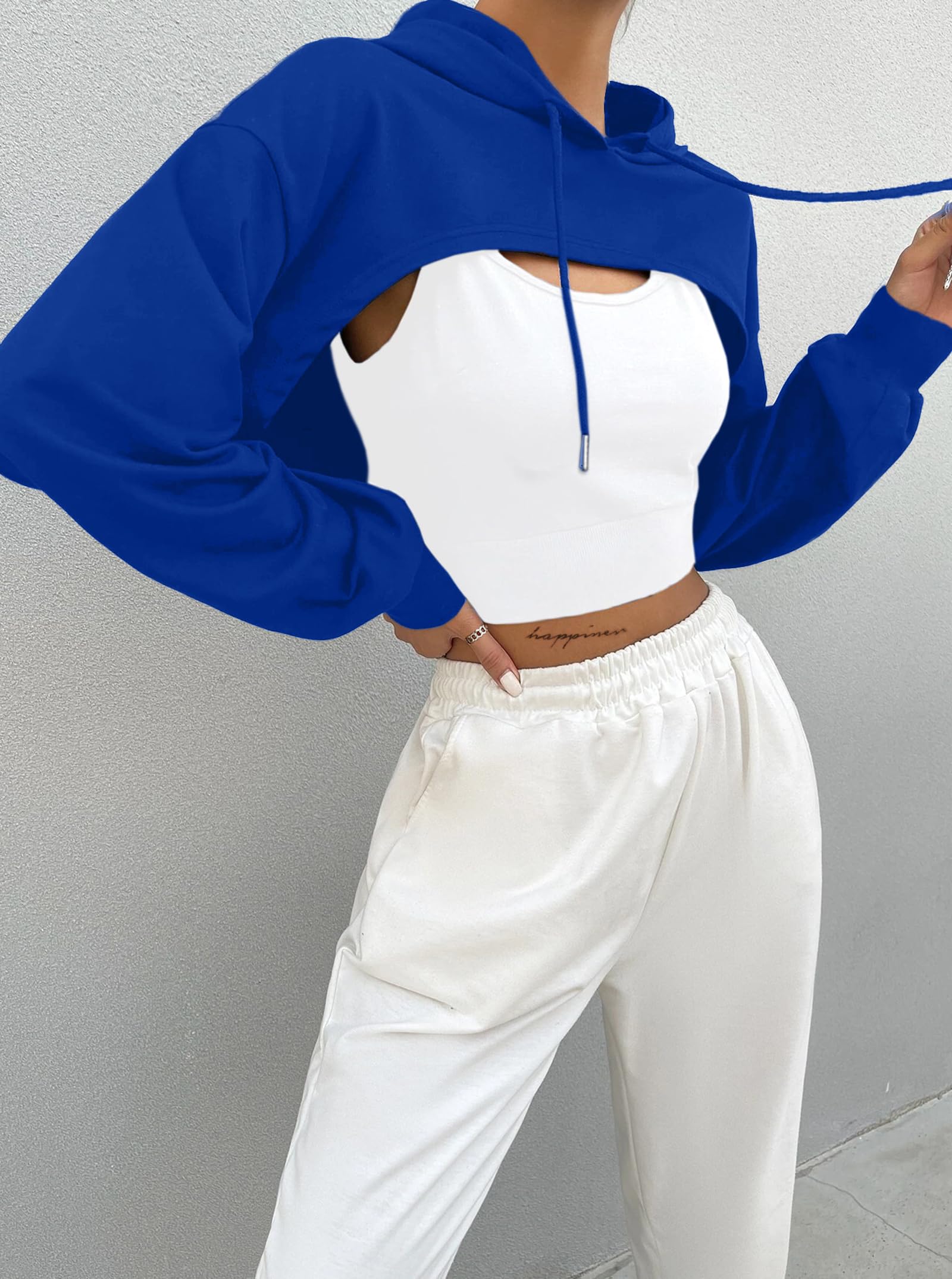 FEATURES: Crop hoodies for women, long sleeves, cropped length, drop shoulder, loose fit, drawstring hooded, workout crop tops for women