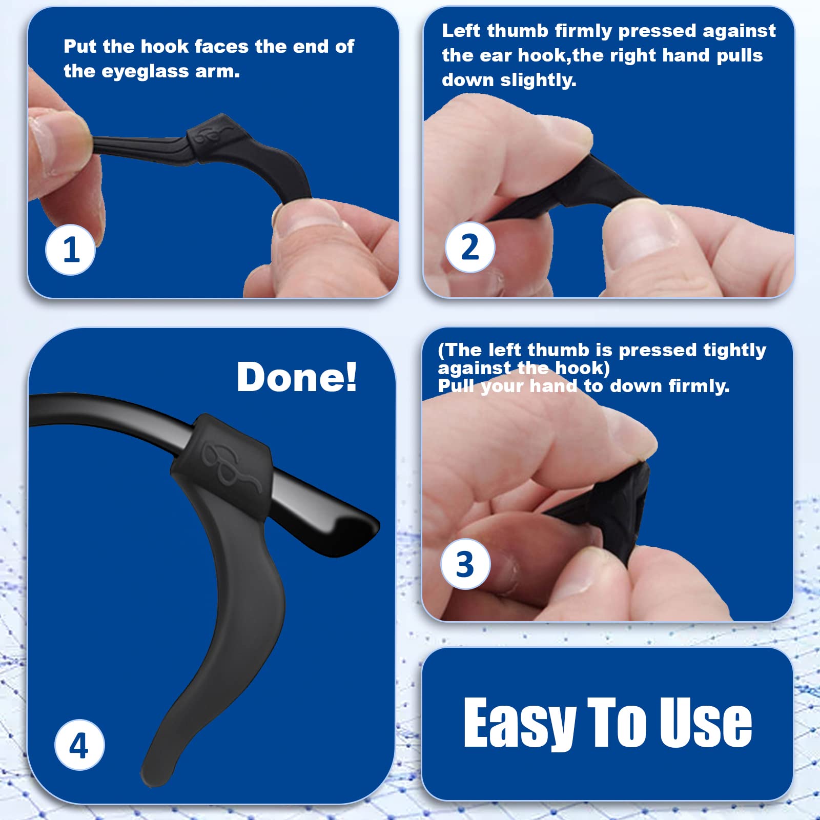 Anti-Slip: Never worry about missing your glasses or sunglasses again. Our special silicone glasses ear grips to keep a tight grip on your glasses so you can do anything freely