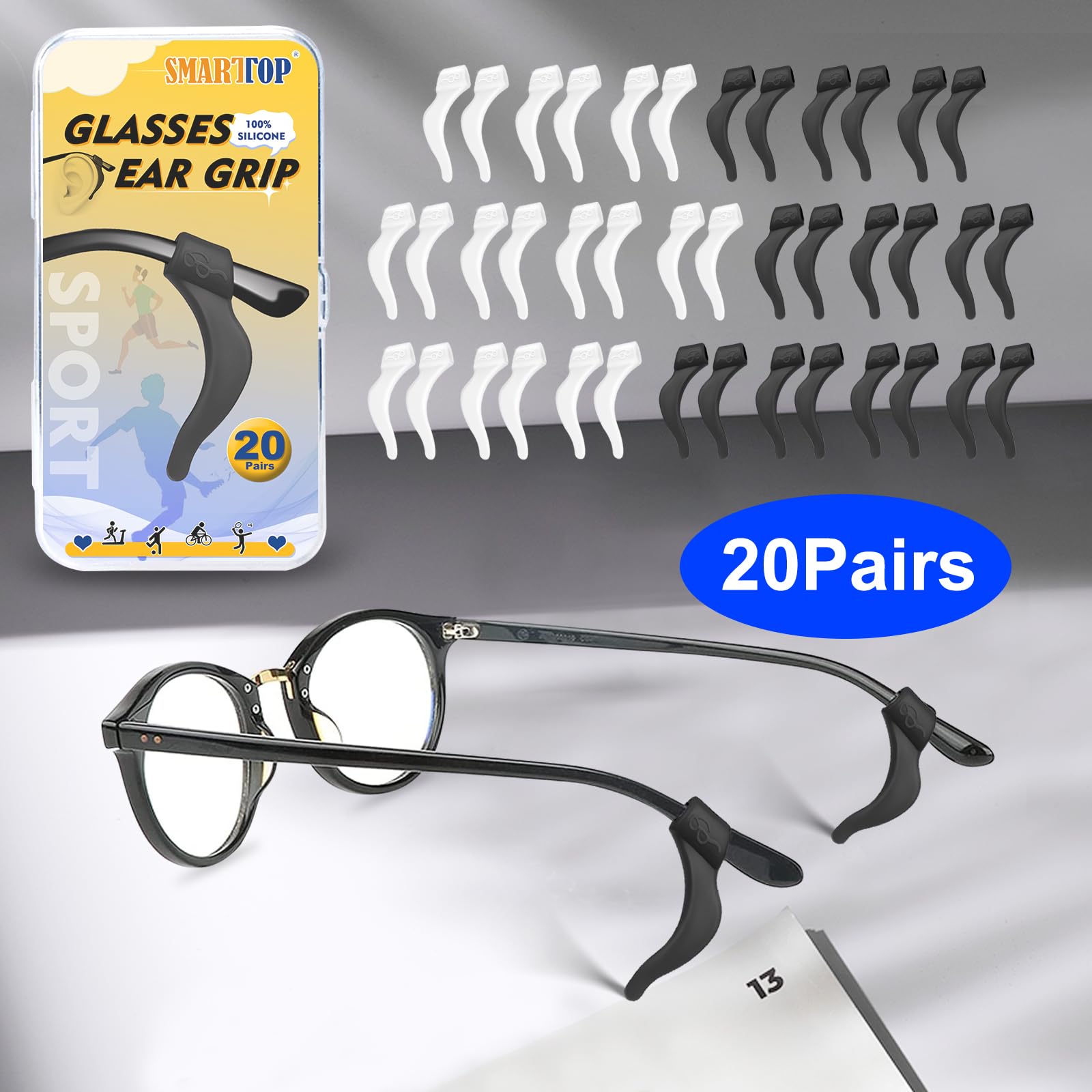 SMARTTOP Eyeglass Ear Grip-20 Pairs eye glasses ear grippers Anti-slip holders for ears,Silicone Ear Hook,glasses ear grip Retainer for Sports Glass Sunglasses Reading