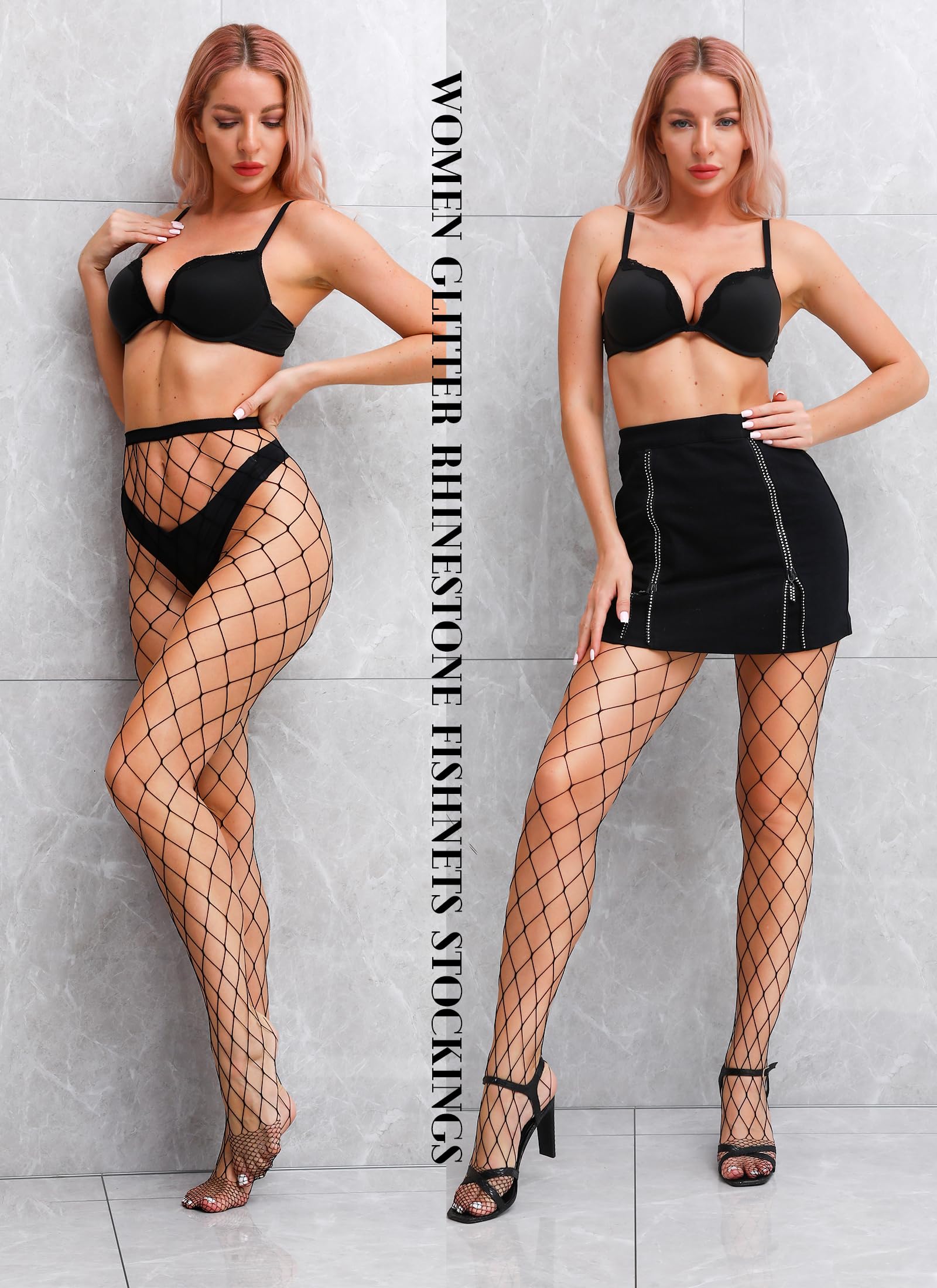 Package Include: 2 Pairs of high waist fishnet tights with two types, Large mesh and Middle mesh.