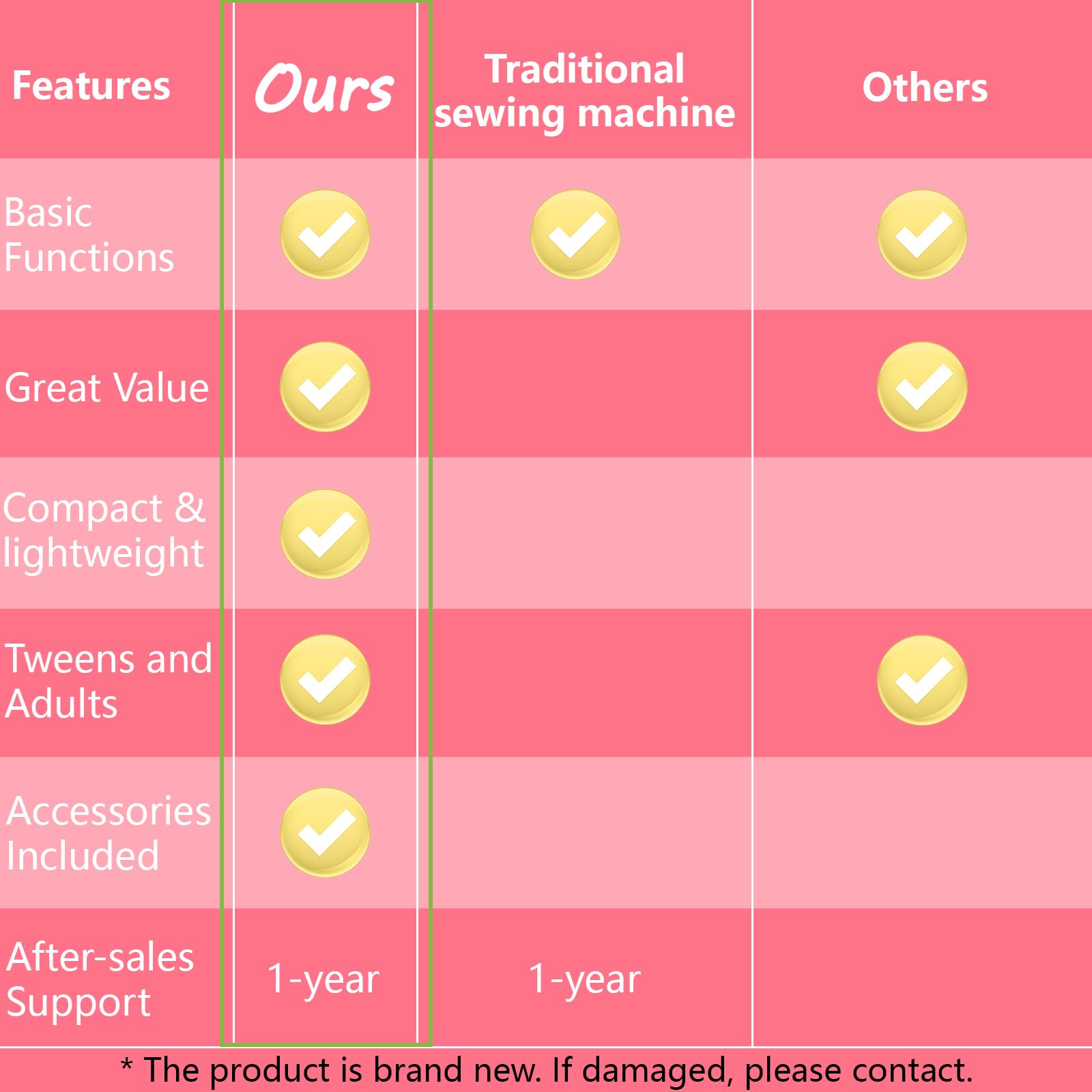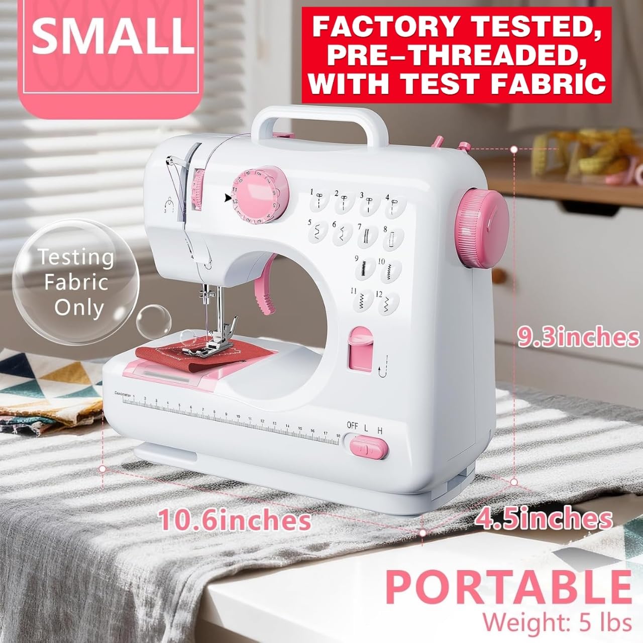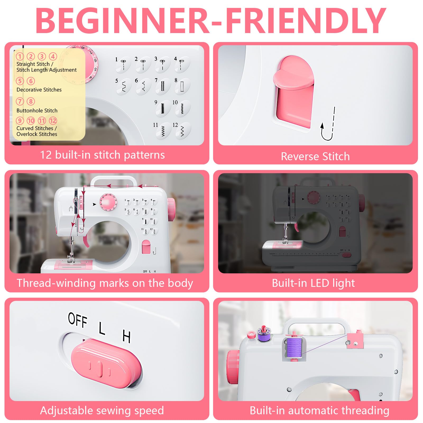 【Versatile Stitch Options for Every Project】 This portable sewing machine offers 12 built-in stitch patterns, from basic seams to hems and buttonholes, making it ideal for all kinds of sewing projects. It's beginner-friendly and designed for hobbyists, with features like forward and backward stitching, sleeve sewing capability, and helpful extras such as an LED light, a thread cutter, and a handy storage drawer for organizing your sewing essentials.