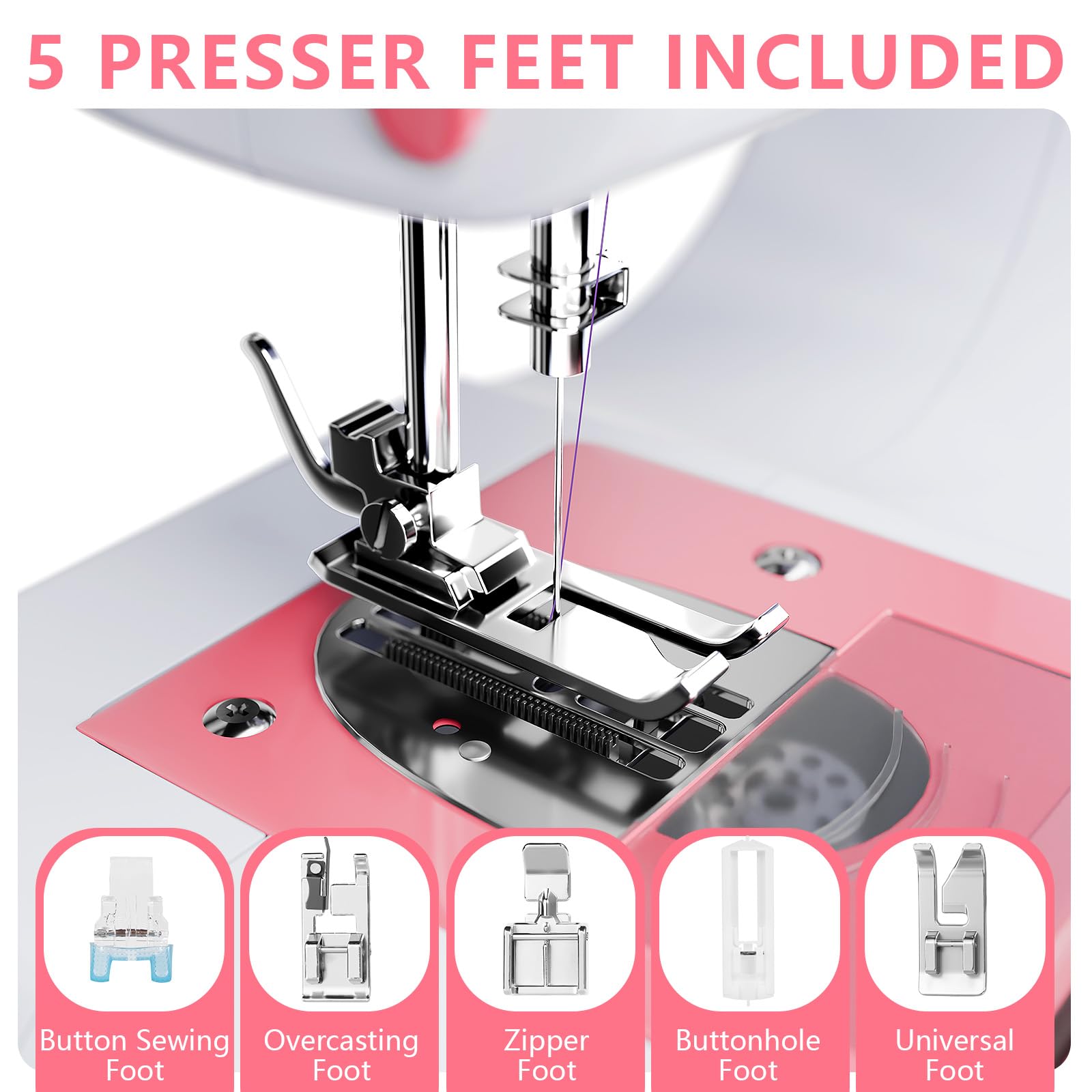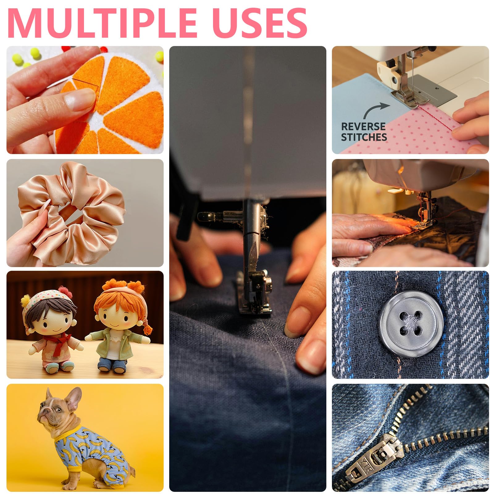 【Automatic Bobbin Winder & Reverse Stitch Function】 Save time with the automatic bobbin winder—just turn on the machine, and it does the rest. Use the one-touch reverse stitch function to reinforce seams and prevent fraying. Switch out presser feet as needed to work on everything from heavy fabrics like denim to delicate materials like doll clothes, making it a perfect all-rounder for various sewing tasks.
