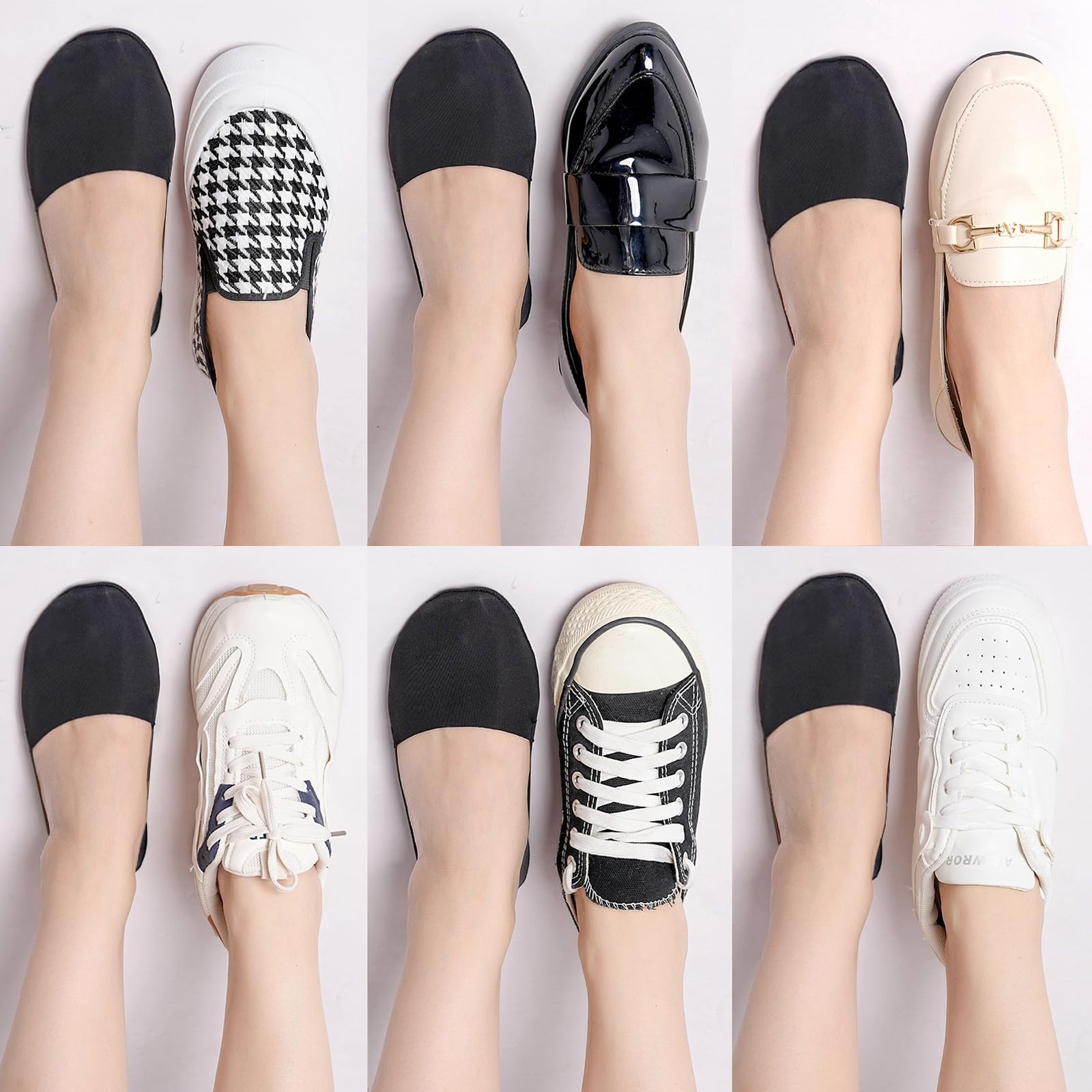 Low Cut No Show Socks: These nylon liner socks are invisible with different kinds of ladies' shoes by the low rise design, like Flats, sneakers, loafers, slip-ons, canvas, boat shoes, etc. The thin hidden socks give a barefoot appearance and feeling to better match your fashionable outfits