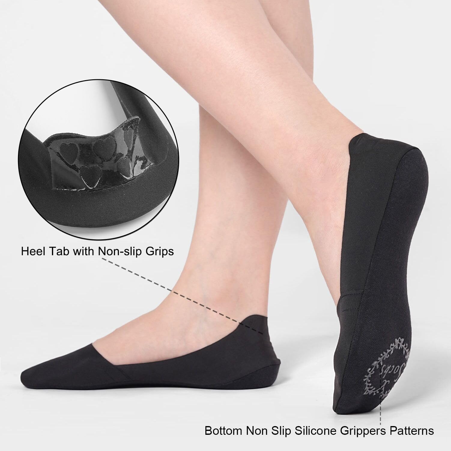 Comfort and Breathable Fabric: The top of socks is made from super silky nylon materials and the bottom is made from cotton, both of them are elastic, lightweight, durable and excellent moisture-wicking to maximize comfort and snug