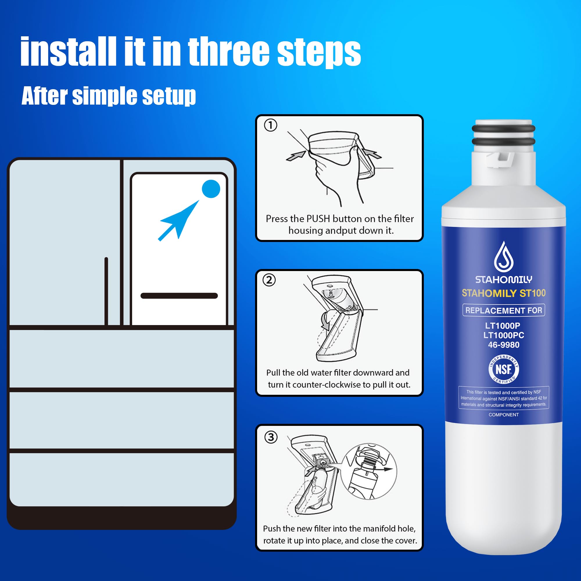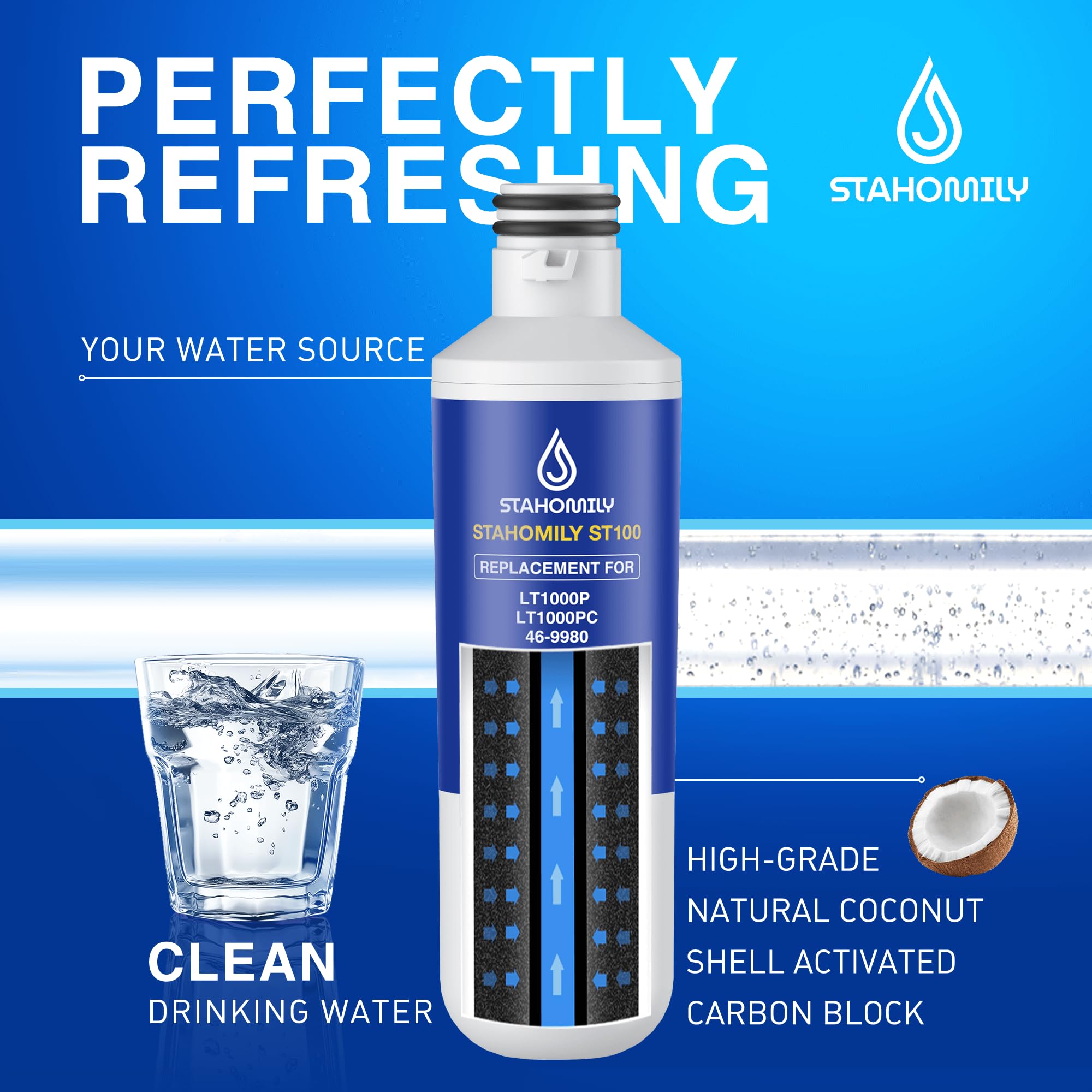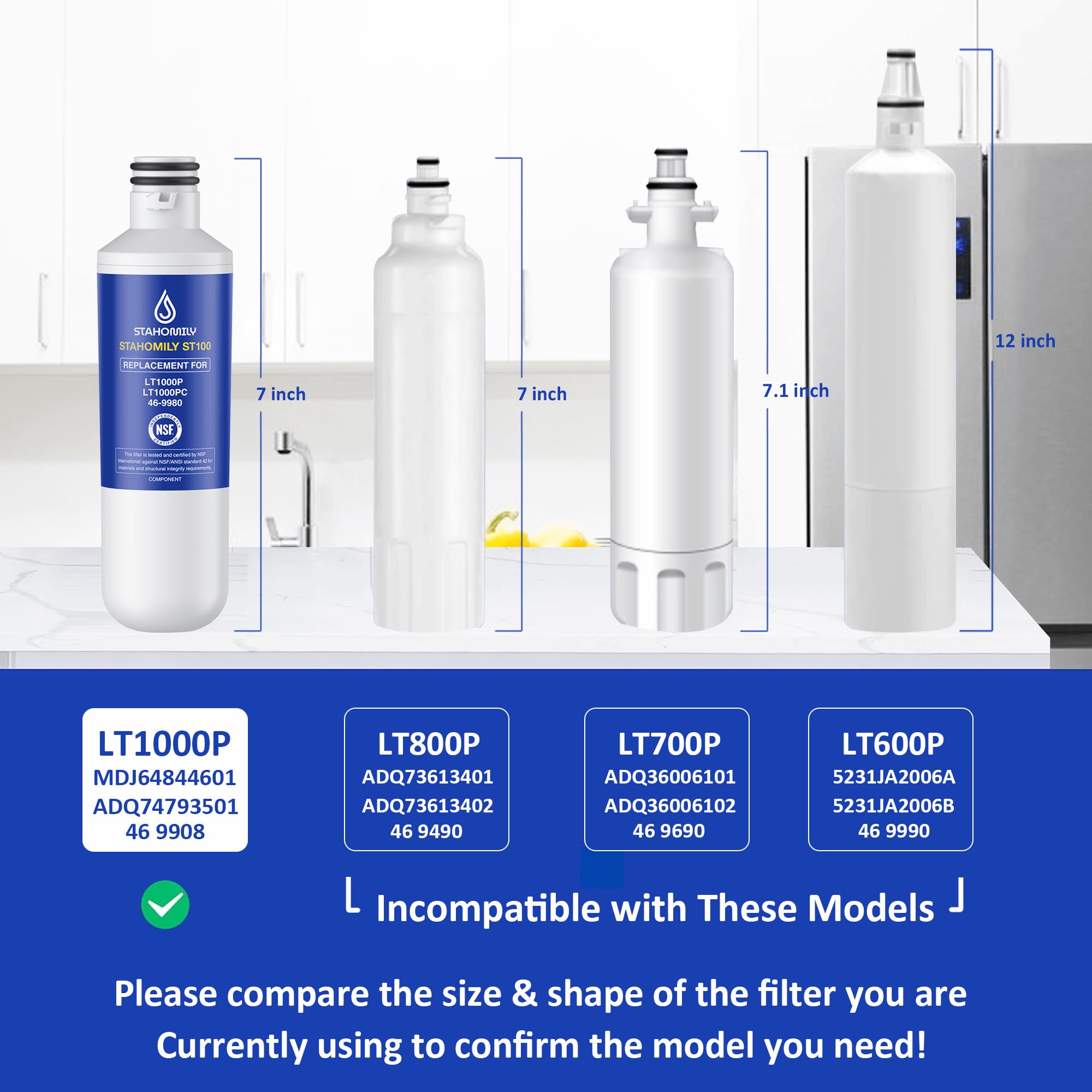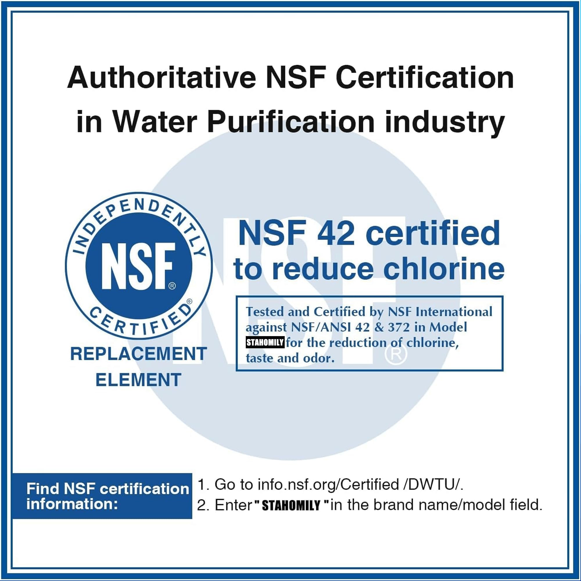 Certified: Stahomily LT1000P water filter replacement parts comply with NSF/ANSI 42 (taste/odour) and 372 (lead-free) certified