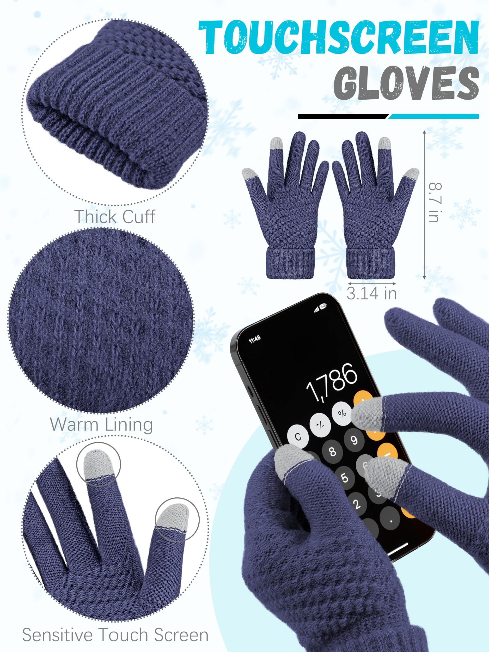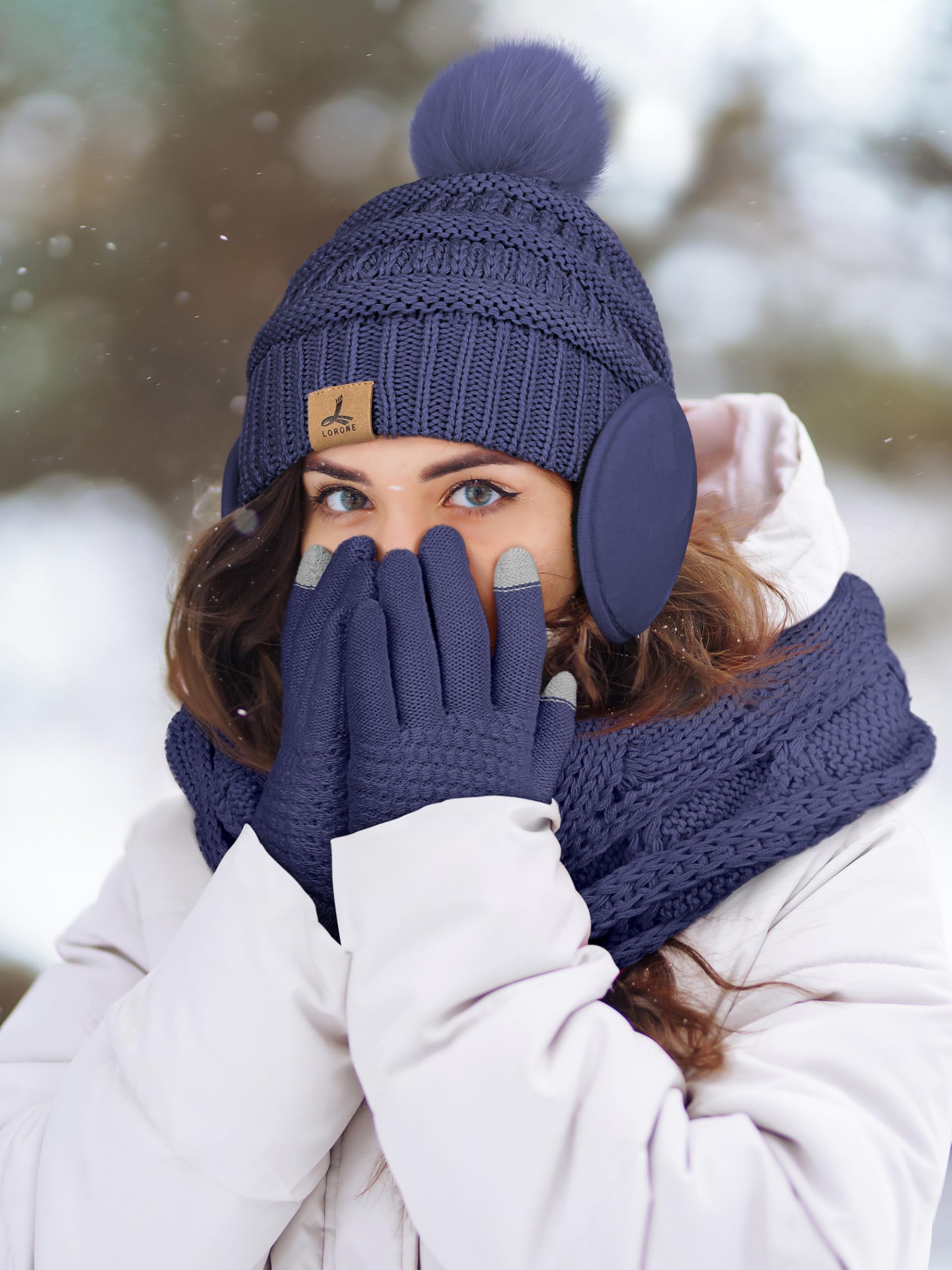 Value Package - Elevate your winter style with our women's beanie and glove set, including 1 winter hat, 1 knitted winter scarf, 1 pair of touchscreen winter gloves, and 1 winter ear muffs.