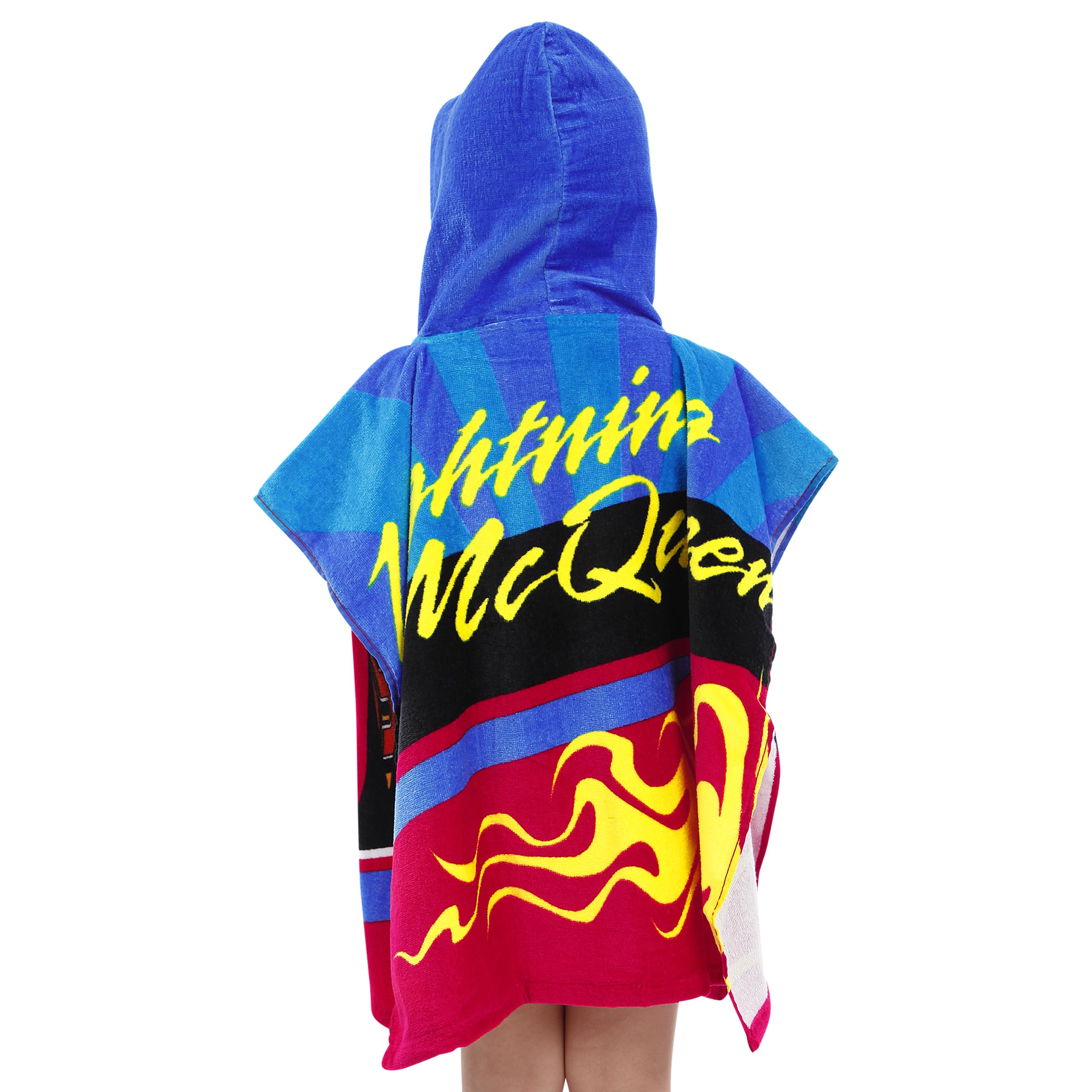 Officially licensed Disney merchandise. A hooded towel poncho for kids, featuring Lightning McQueen from Cars