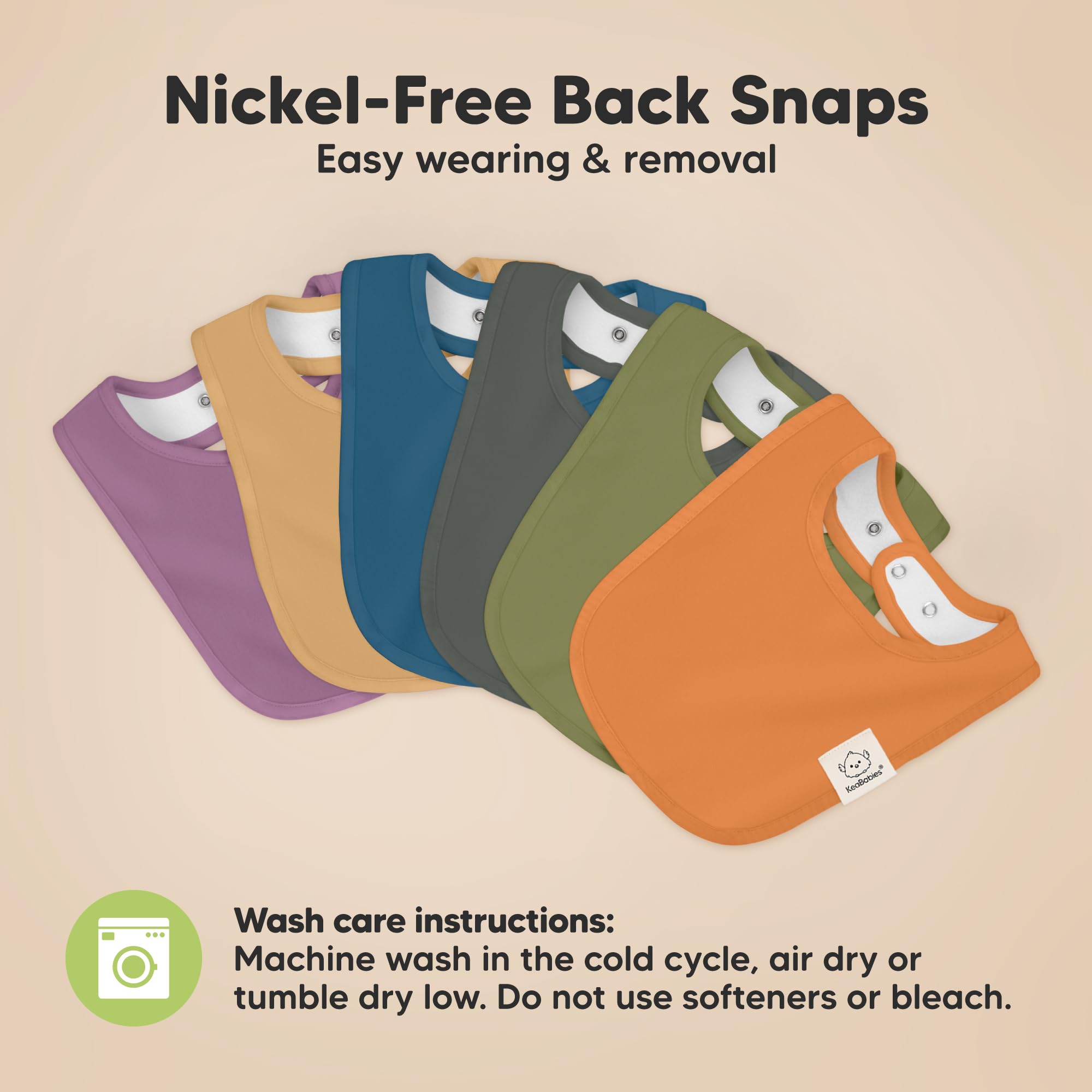3 Adjustable Size With Soft Seams - With 2 sets of easily fasten nickel free snaps, you can adjust the girl and boy bibs according to your baby’s neckline. The soft wrapped organic cotton seams provide extra comfort for your baby and they won’t feel a thing while having the baby cotton bibs on. Suitable for newborn babies up to 24 months.