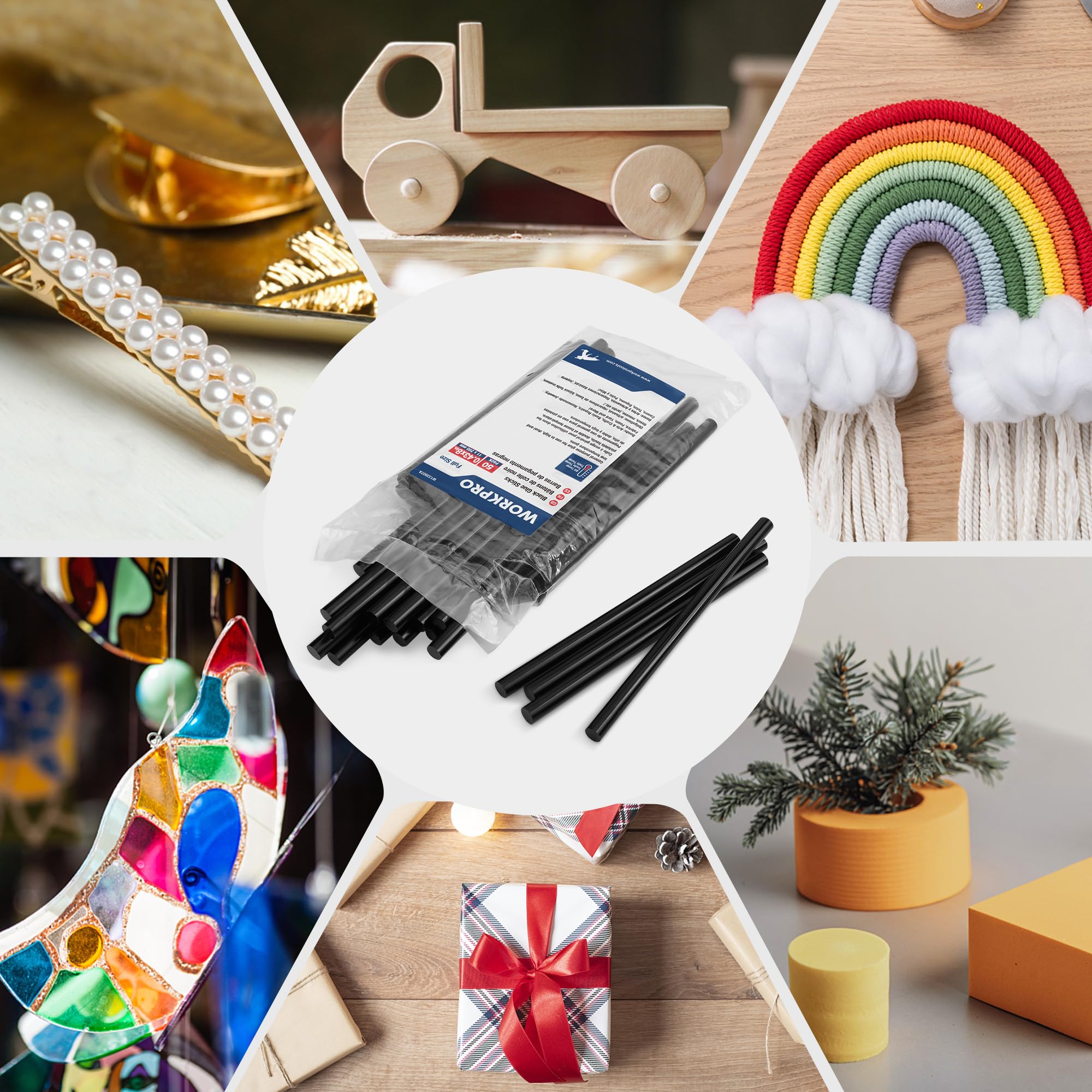 Wide Appliaction: Hot Melt Adhesive Glue Sticks are widely used in wood, paper, cardboard, metal, textile, cork, glass, and various plastics, and are perfect for electronic appliances, general repairs, home holiday decorations and DIY art crafts