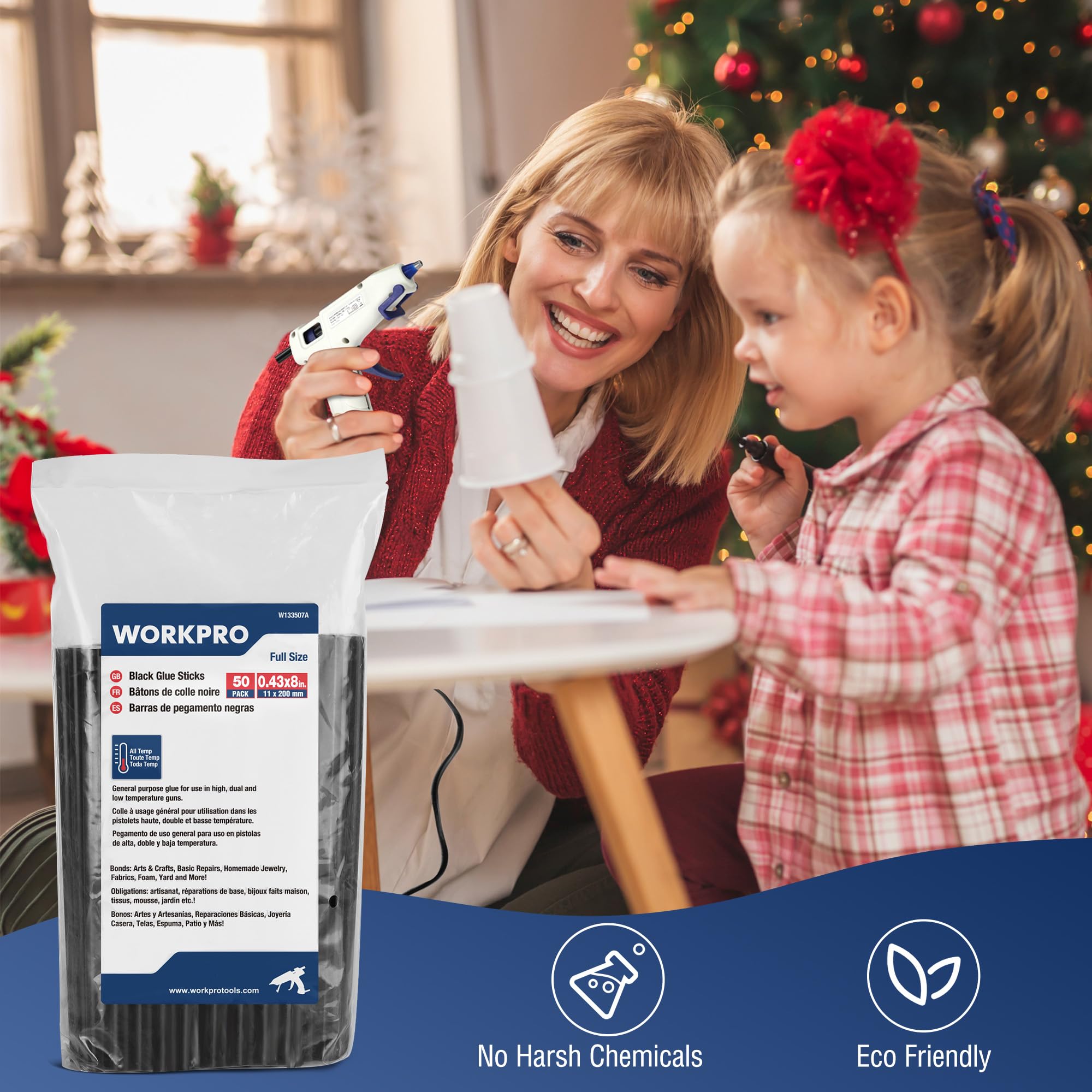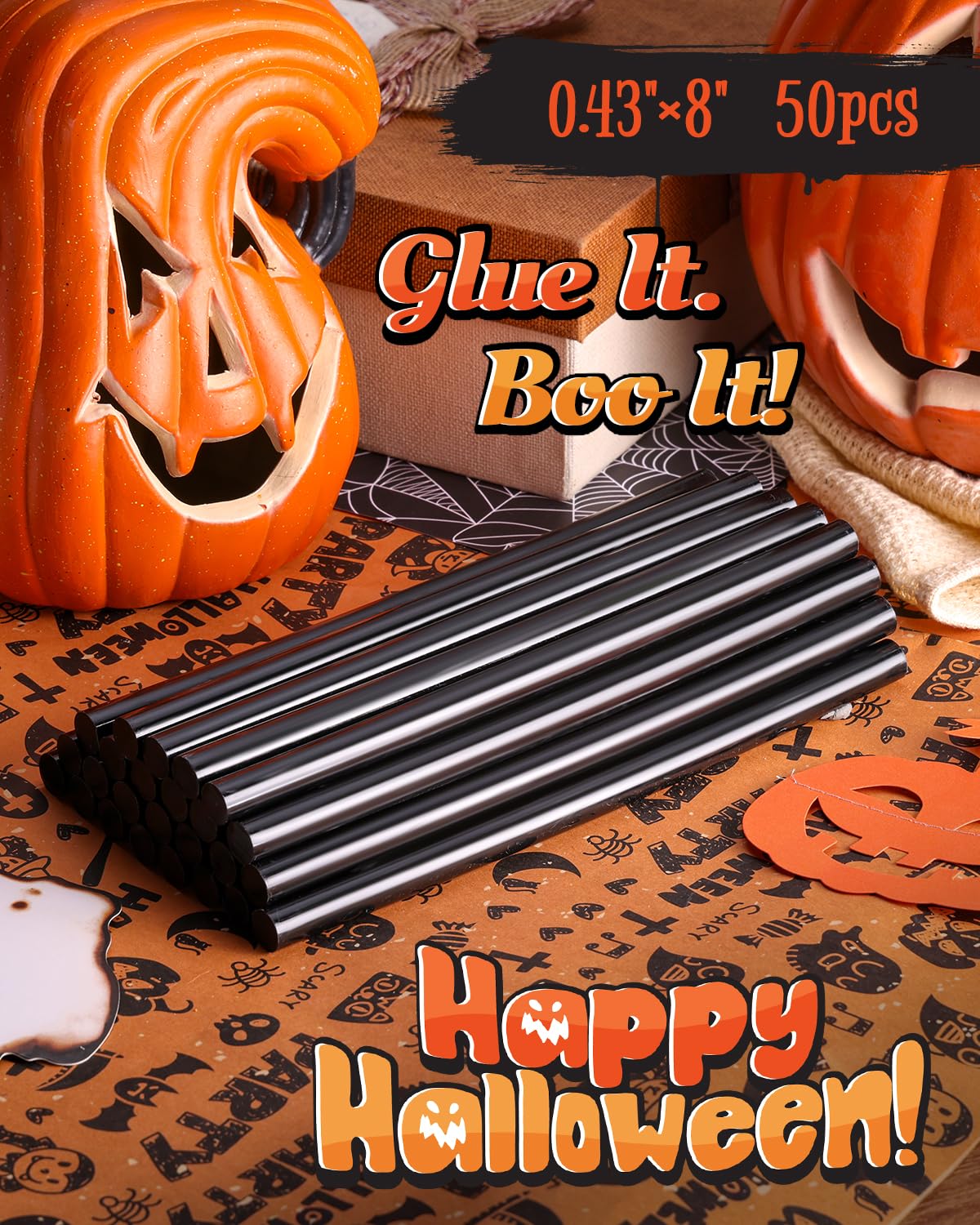 50 PCS Full Size Sticks: Comes with 50 packs of black hot melt glue sticks for most repair use, 0.43" diameter x 8" length full-size hot glue stick fits most glue guns on the market