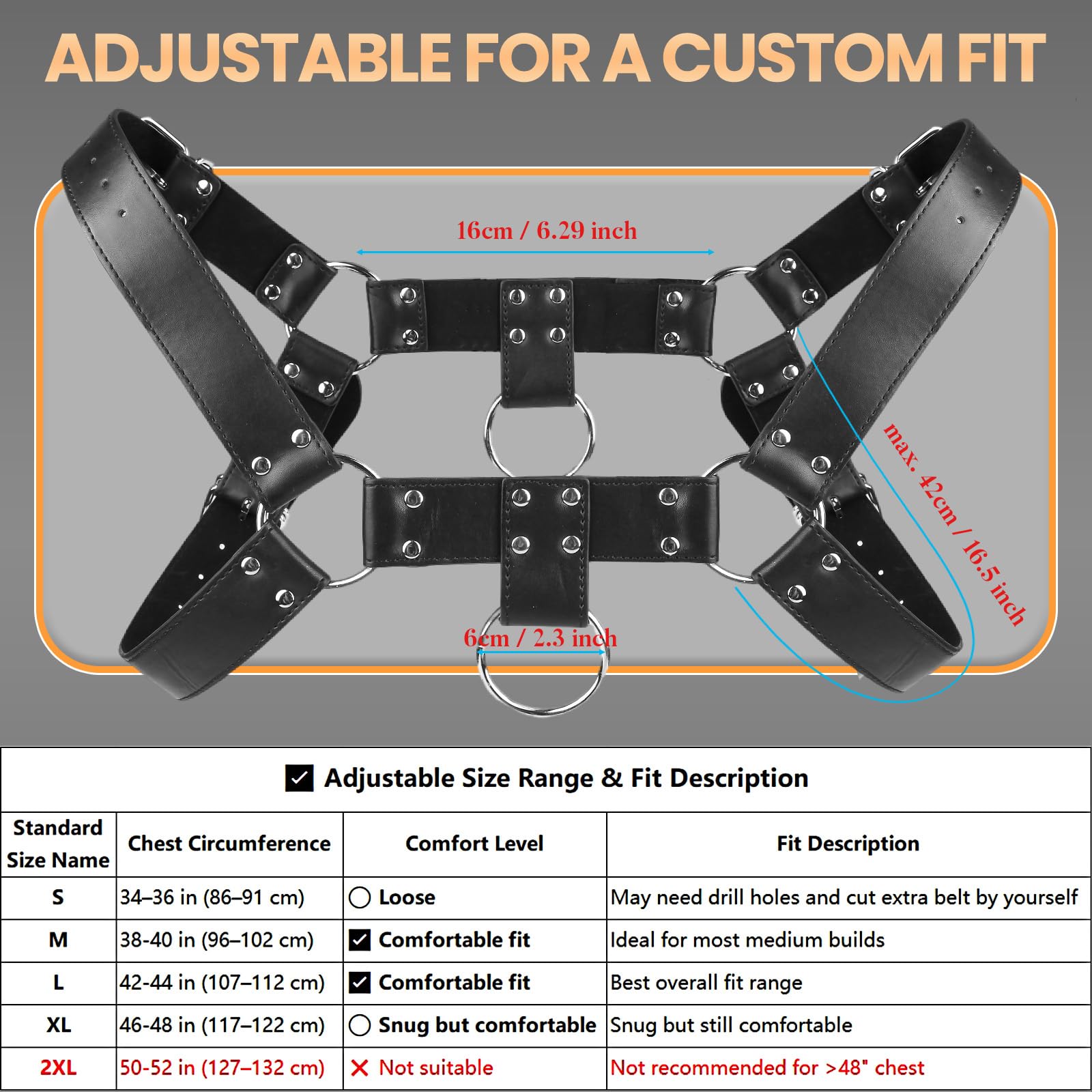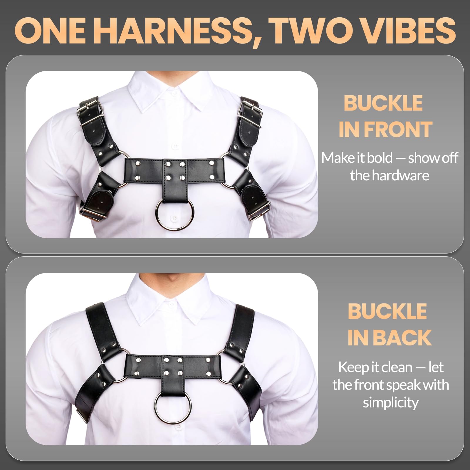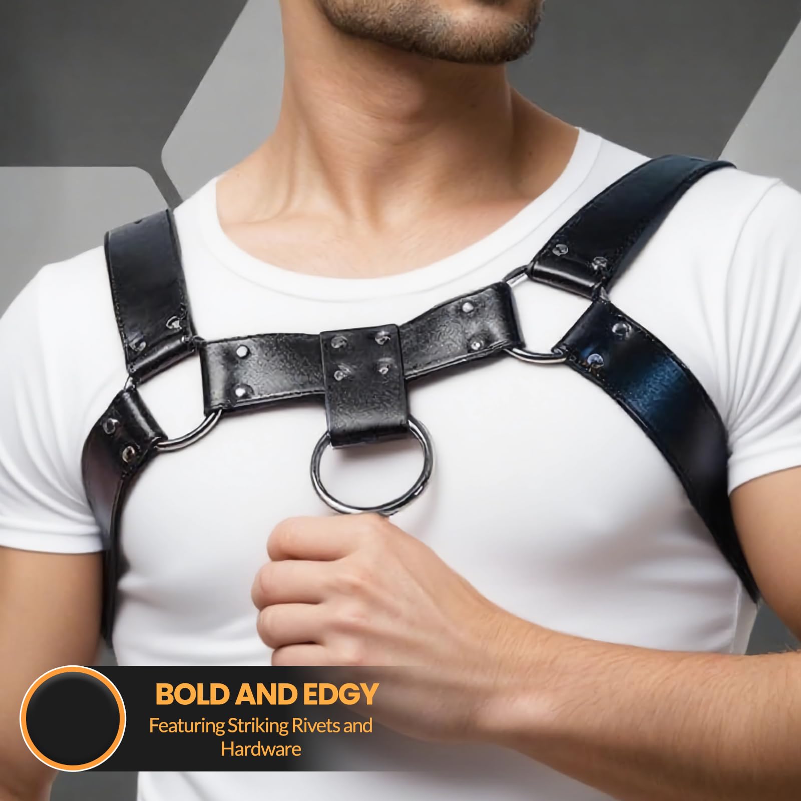 Premium Craftsmanship: Crafted from durable faux leather, this chest harness offers both structure and style, designed for long-lasting wear and everyday confidence