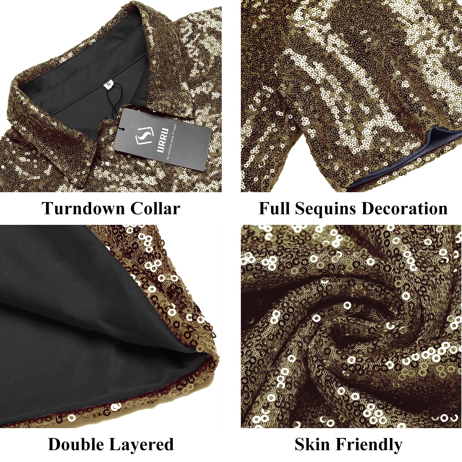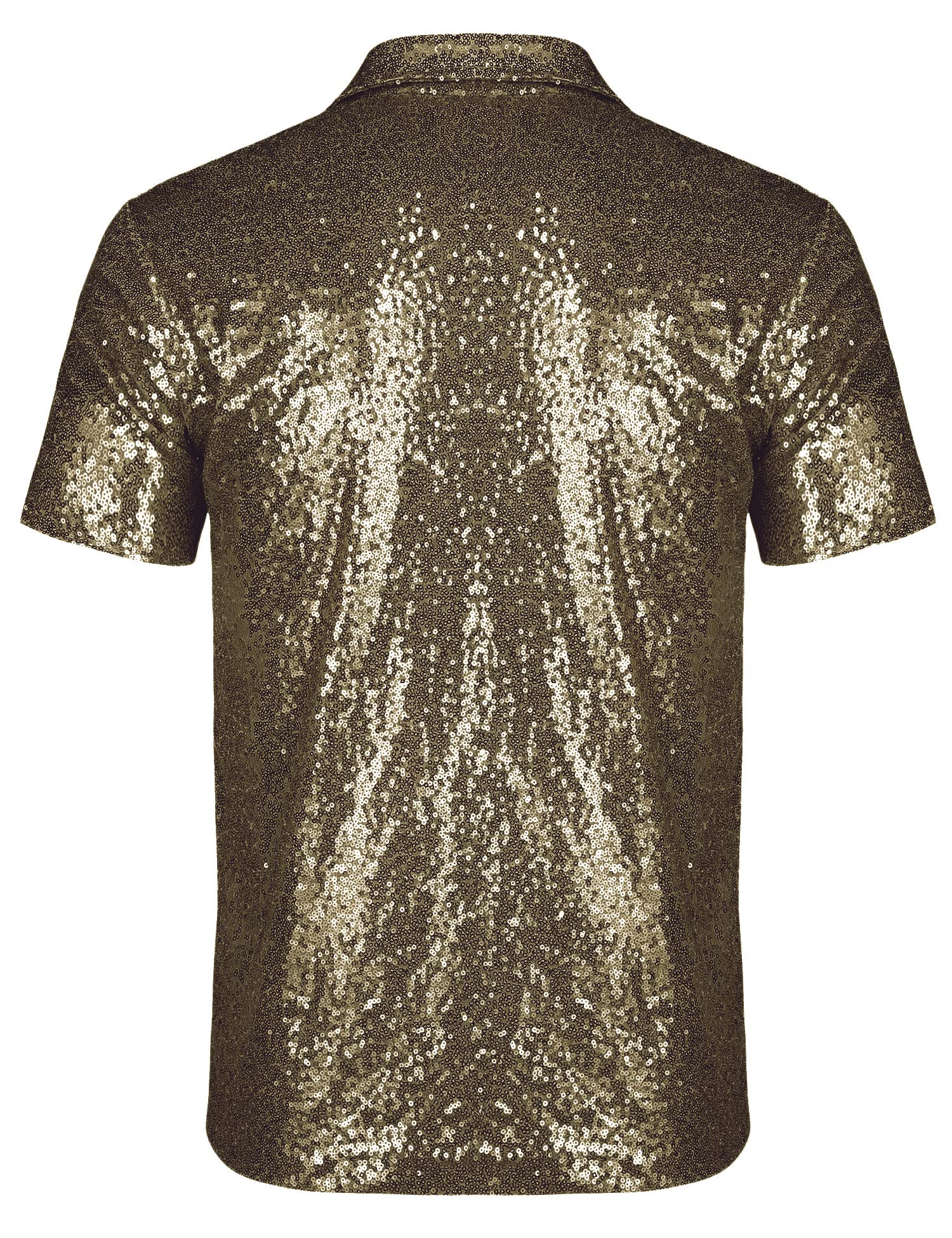 Unique Design: Our sequin disco polo shirt features a double-layered design that includes a sequin-covered outer layer and a full mesh-lined inner layer. The mesh layer provides added comfort and protects the skin from scratching, while the full sequin layer decoration adds a sparkling and shimmering effect
