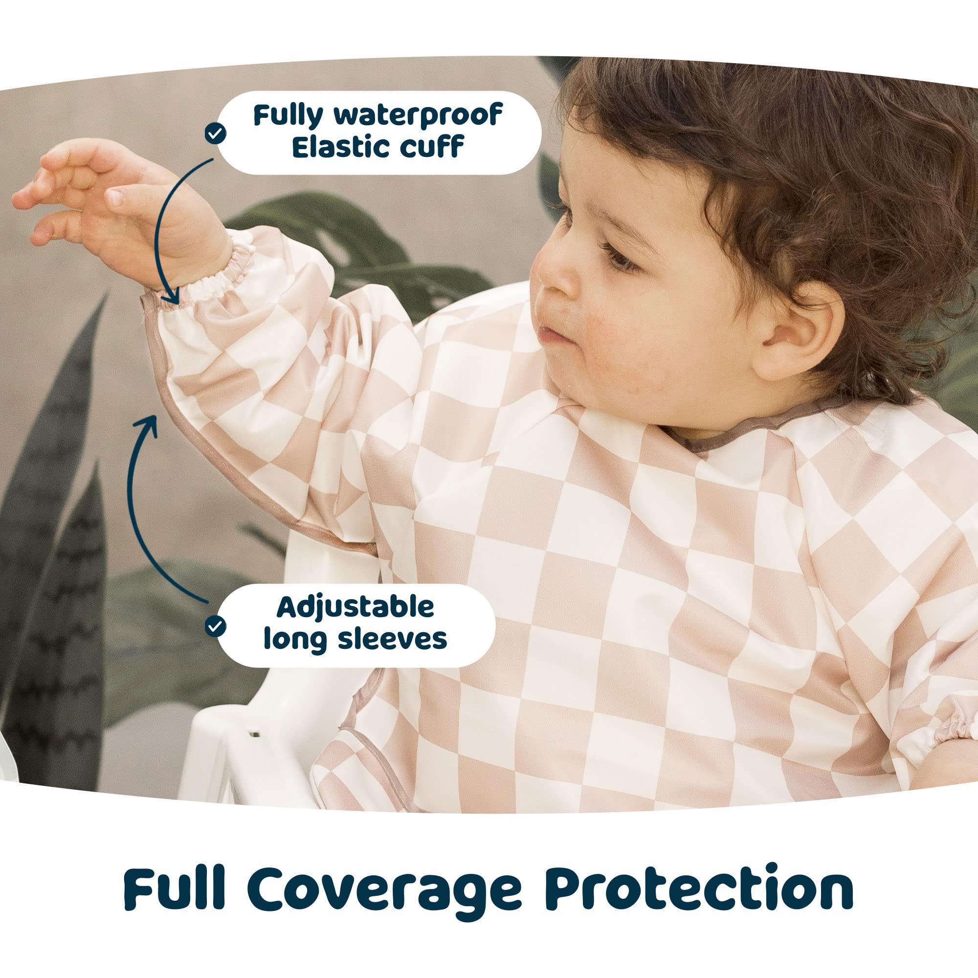 MESS-PROOF MEALTIME: Our soft, waterproof bibs for babies feature gentle elastic cuffs and provide full-body coverage—just like a bib shirt or a full-body bib. They keep little ones clean and comfortable through every meal, snack, and adventure. An essential for daily use and mess-free play.