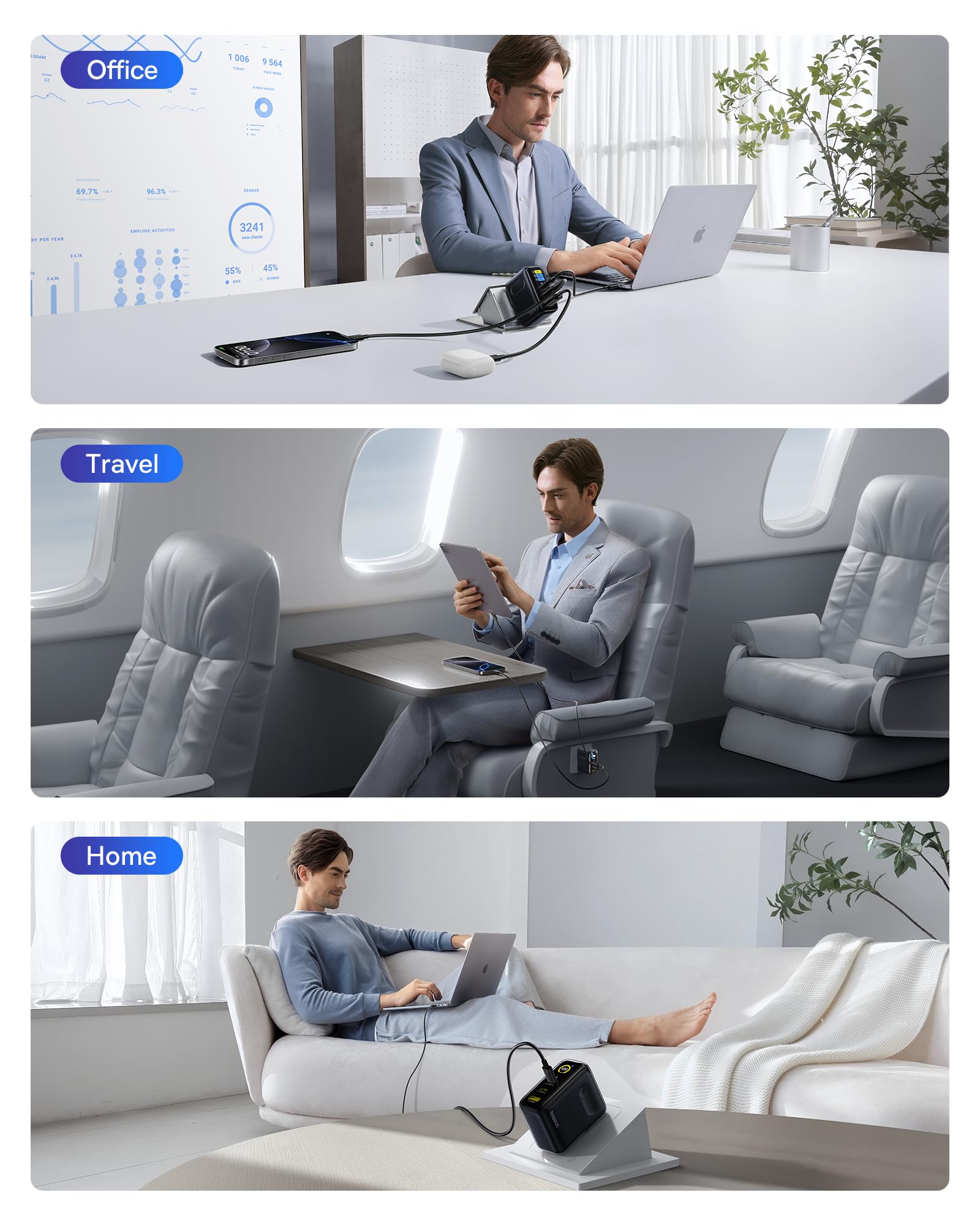 100W Ultra-Fast Charging: Any of two USB-C ports delivers up to 100W of high-speed power, charging a MacBook Air to 56% in just 30 minutes and a iPhone 17 to 55% in just 20 minutes.